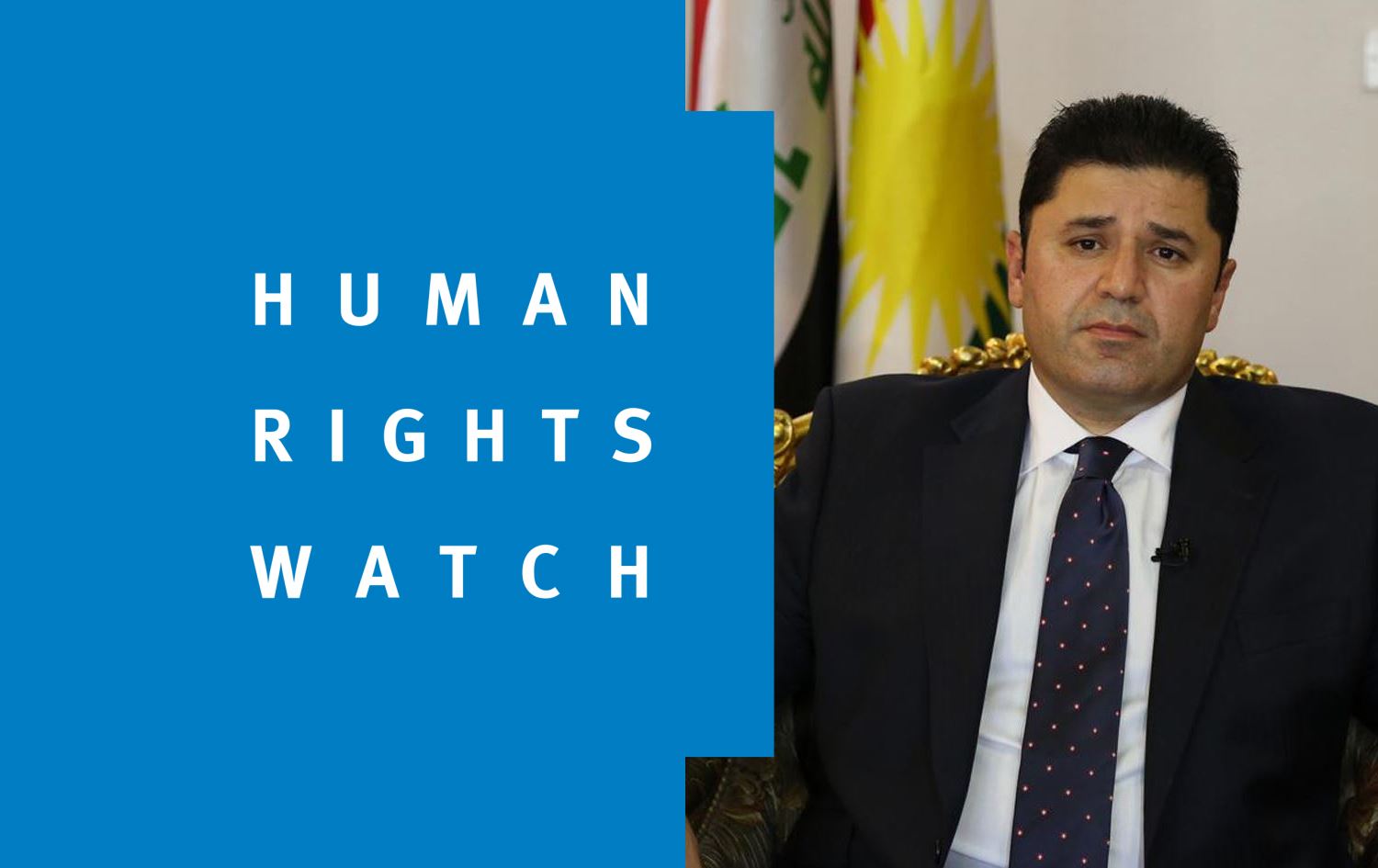 دیندار زێباری، رێکخەری راسپاردە نێودەوڵەتییەکانی حکومەتی هەرێمی کوردستان و لۆگۆی هیومان رایتس وۆچ