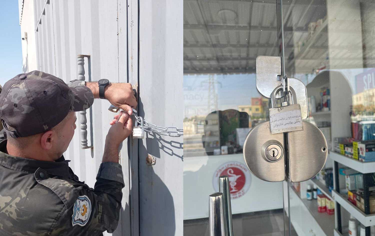 لە ئامارەکەی لیژنە هاوبەشەکانی قایمقامییەتی هەولێردا هاتووە، ئەو شوێنانەی لە هەولێر و دەوروبەری بەهۆی پابەندنەبوون بە رێکارە تەندروستی و کارگێڕییەکانەوە داخراون بریتین لە؛ 755 هۆتێل، رێستۆرانت، مارکێت، خواردنگەکان و فرۆشگە جیاکانی دیکە، هەروەها 343 دەرمانخانە و کۆگەی دەرمان داخراون.