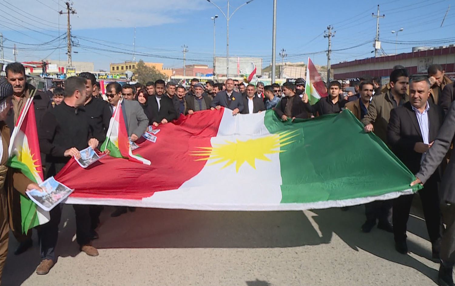 کادیرێکی حیزبی بەناوی دەریا سابیر لە خۆپێشاندانەکەدا گوتی، "هەولێر ناکەوێت، ناهەژێت، نالەرزێت و دەمێنێت." سابیر گەورەدێیی، خانەنشین هۆکاری هێرشی وڵاتانی بۆ ئەوە گەڕاندەوە کە "نایانەوێت [کورد] بە ئازادی بژین."