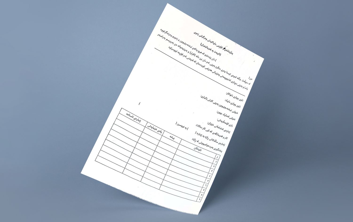 - پێویستە فۆرم بە 3 نووسخەی دەستنووس پڕبکرێتەوە و بۆ لیژنەکە بگەڕێندرێتەوە