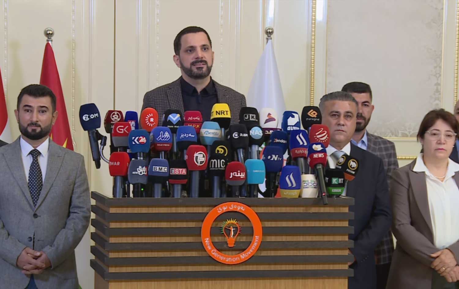 هەر لە کۆنگرە رۆژنامەڤانییەکەدا، سەرۆکی جووڵانەوەی نەوەی نوێ داوایەک ئاراستەی دکتۆر کازم دەکات و پێی دەڵێت: "لە هەر شوێنێک بیت بەس ئامان قەت نەکەیت لەو دەسەڵاتە نزیک بیتەوە، چۆن پێشتر بەردەوام پێم دەگوتی لە پەرلەمانتاران و بەرپرسەکانی یەکێتی و پارتی نزیک مەبەرەوە، ئێستاش هەمان بۆچوونم هەیە. مەهێڵە بەکارت بهێنن، مەهێڵە پارتی و یەکێتی و میدیاکانیان و هەندێک پەرلەمانتاری جاسووس کە لە ژێرەوە سەر بە دەسەڵات و سەر بە دەزگای پاراستن و زانیاری و ئاسایشن لەسەرەوە خۆیان وەکو پەرلەمانتاری ناڕازی و سەربەخۆ دەردەخەن، نەکەویتە داویانەوە، ئەوانە هەمیشە هەوڵ دەدەن خەڵک بێ هیوابێت، تۆ کوڕێکی بەڕێز و بە هەڵوێست بووی هەر لەسەر هەمان هەڵوێستت بمێنەوە، چیت پێویست بێت ئێمە لەگەڵتاین لە ناوەوە و دەرەوەی وڵات، لە هەر شوێنێک بیت بەس ئامان قەت نەکەیت لەو دەسەڵاتە نزیک بیتەوە."