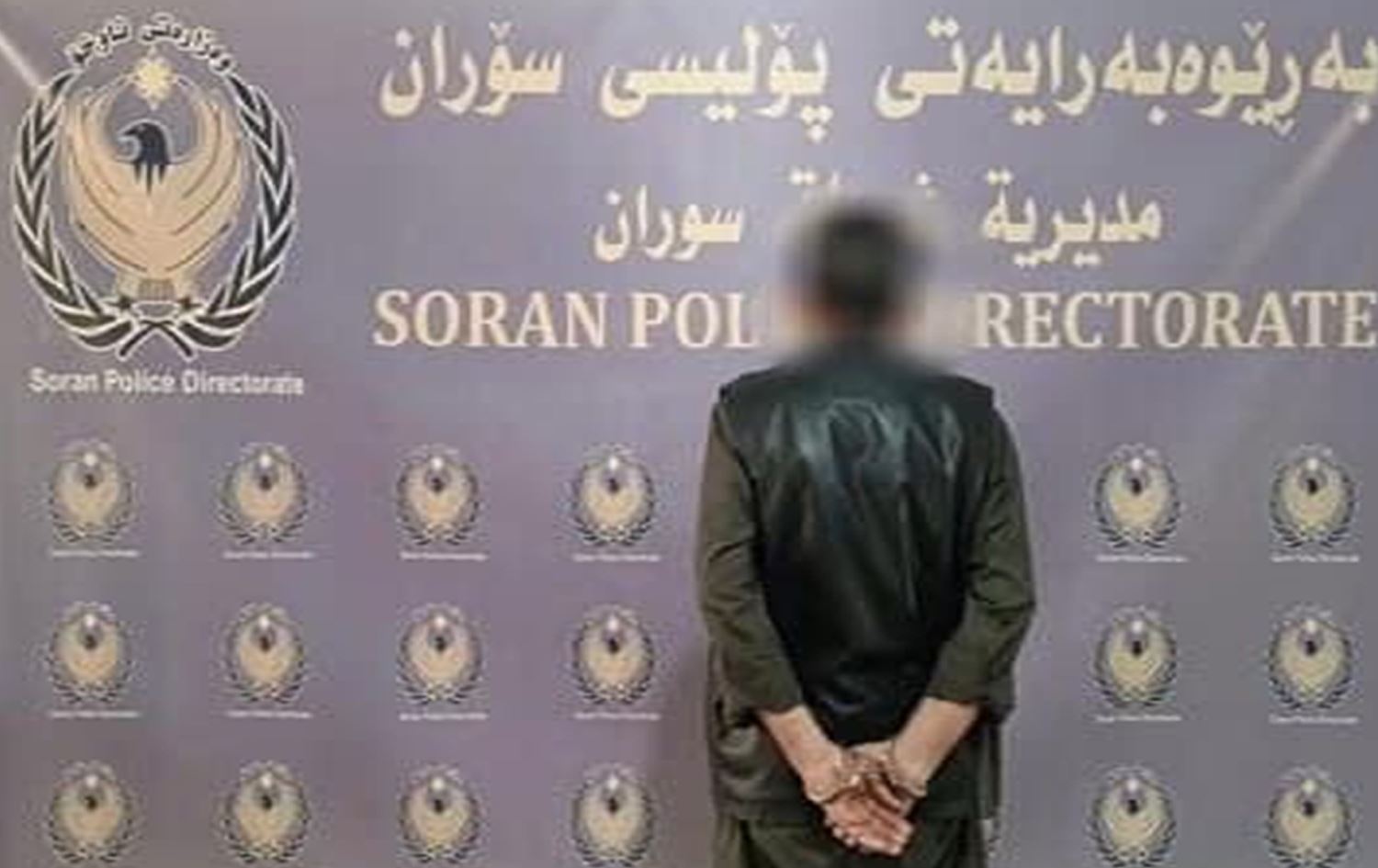 گوتەبێژی بەڕێوەبەرایەتیی پۆلیسی ئیدارەی سەربەخۆی سۆران گوتیشی، "دوای بڕیاری دادوەر و دەستنیشانکردنی شوێنی دانیشتنی ناوبراو، مەفرەزەی بنکە بە سەرپەرشتیی ئەفسەری بنکە دەرچوون بە مەبەستی دەستگیرکردنی، دواتر دەستگیرکرا و دانی بە تاوانەکەیدا نا."