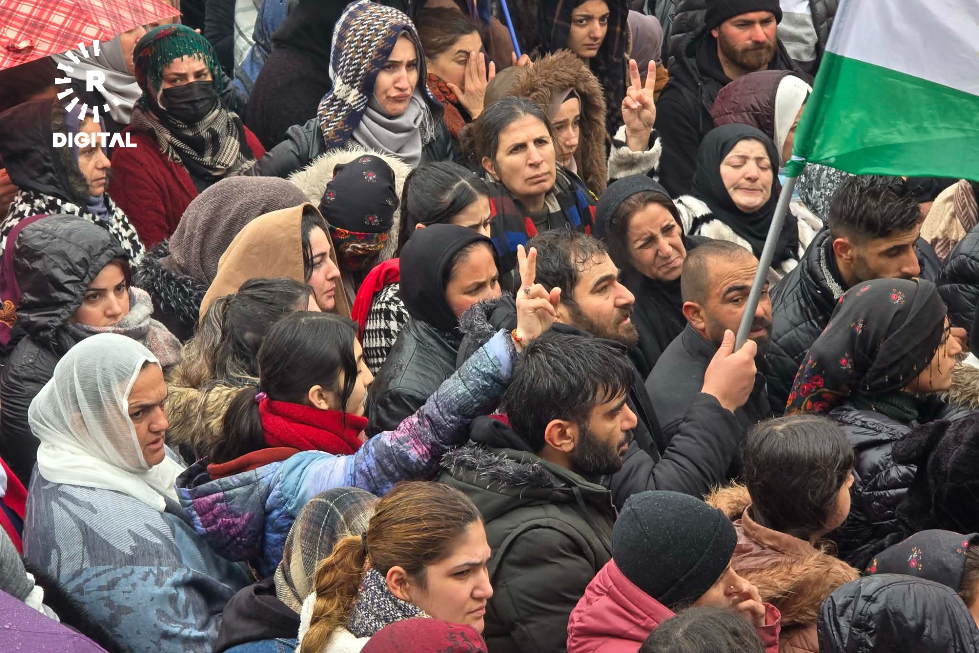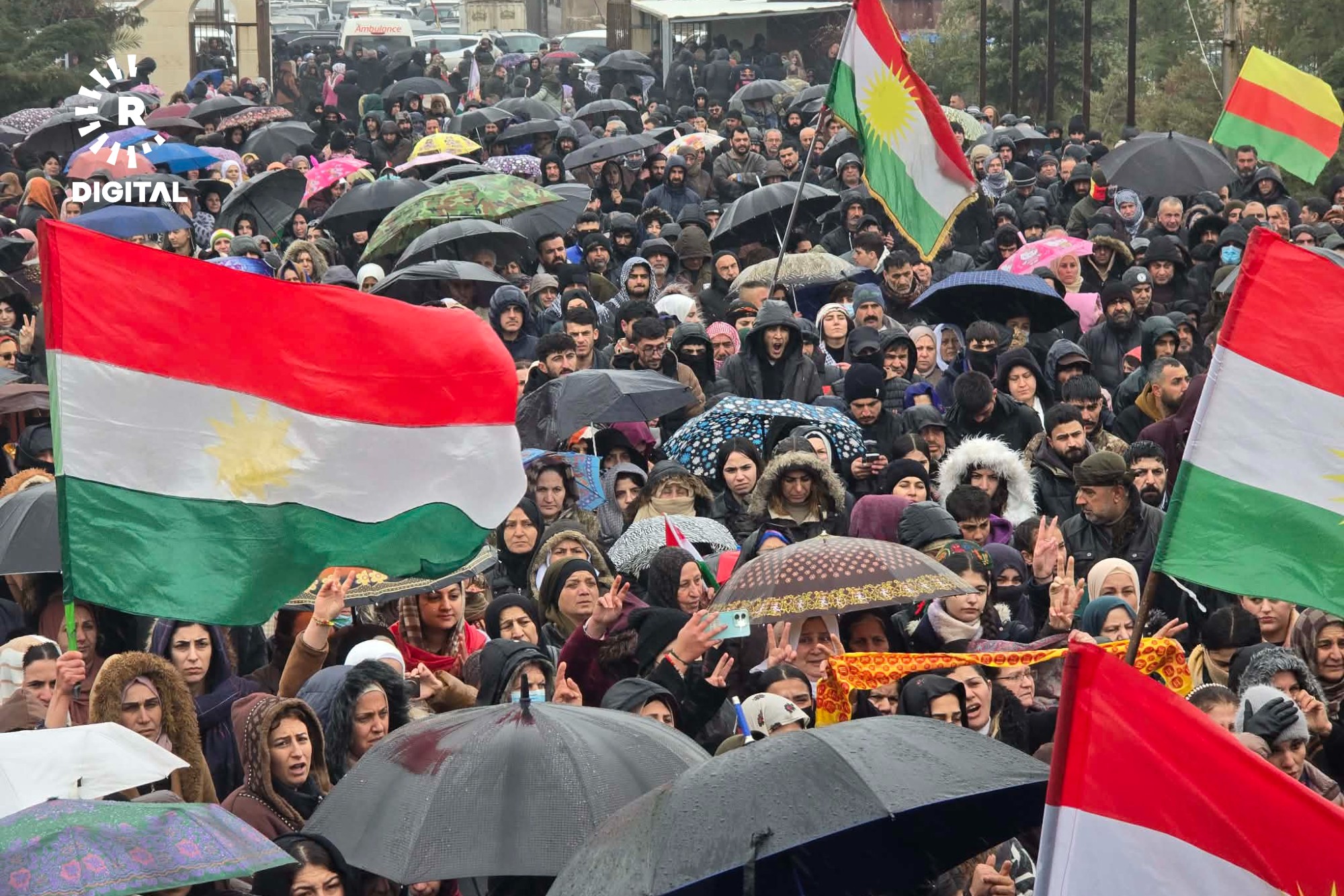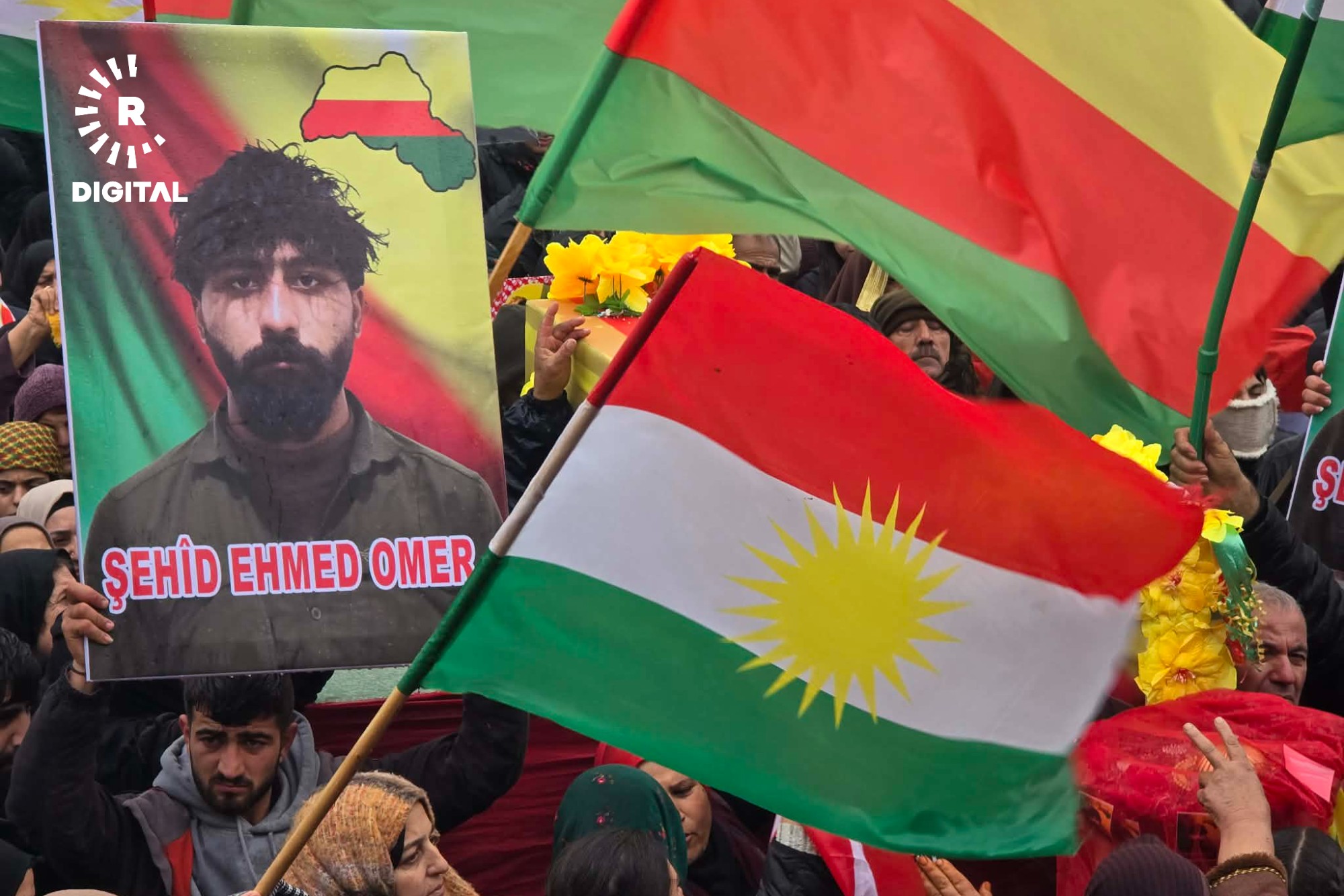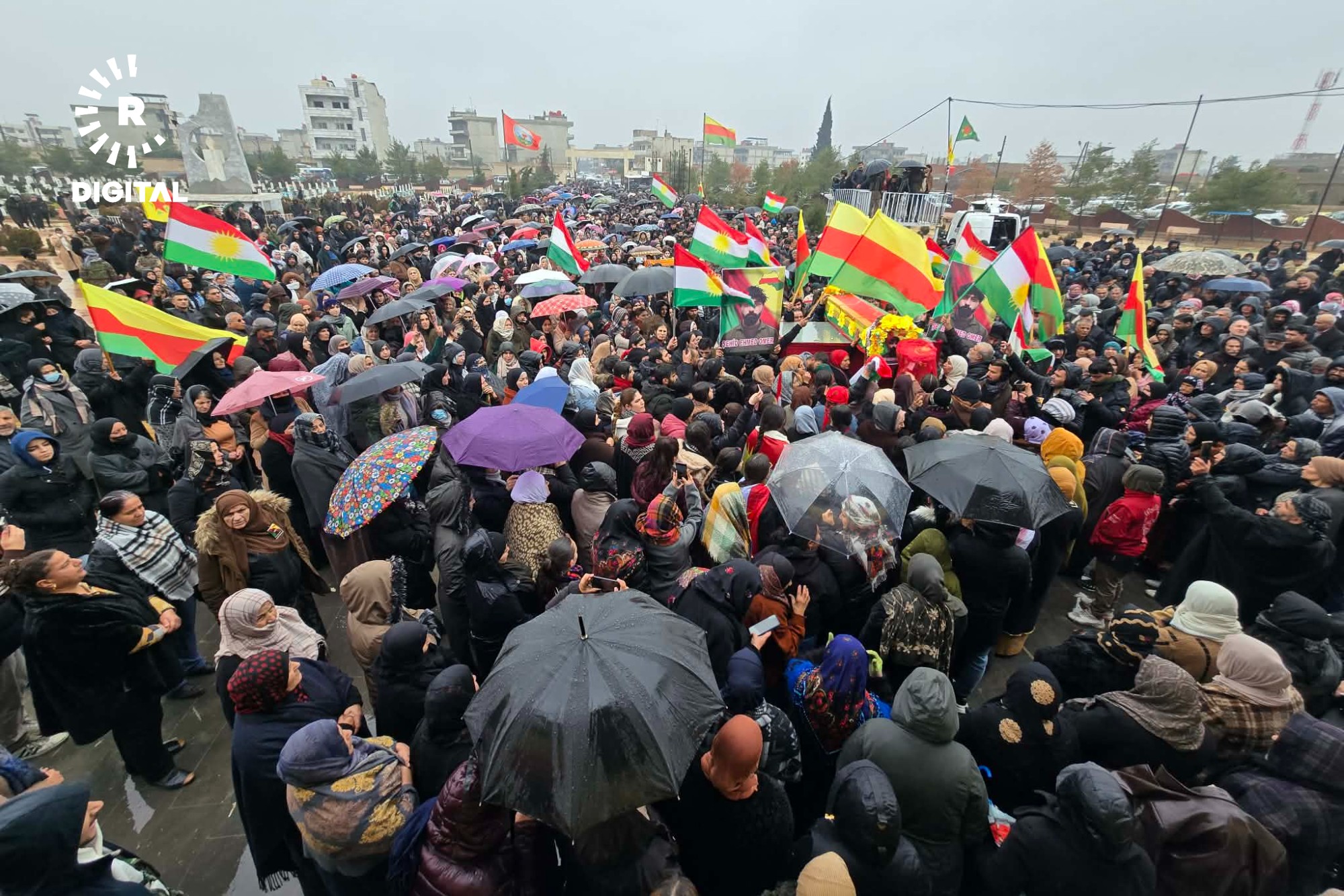 سەدان کەس لە قامشلۆ کۆبوونەوە بۆ پێشوازی و بەڕێکردنی تەرمی ئەحمەد عومەر، ئەوان درووشمی کوردایەتییان دەگوتەوە و ئاڵای کوردستانیان بەرزکردبووەوە.