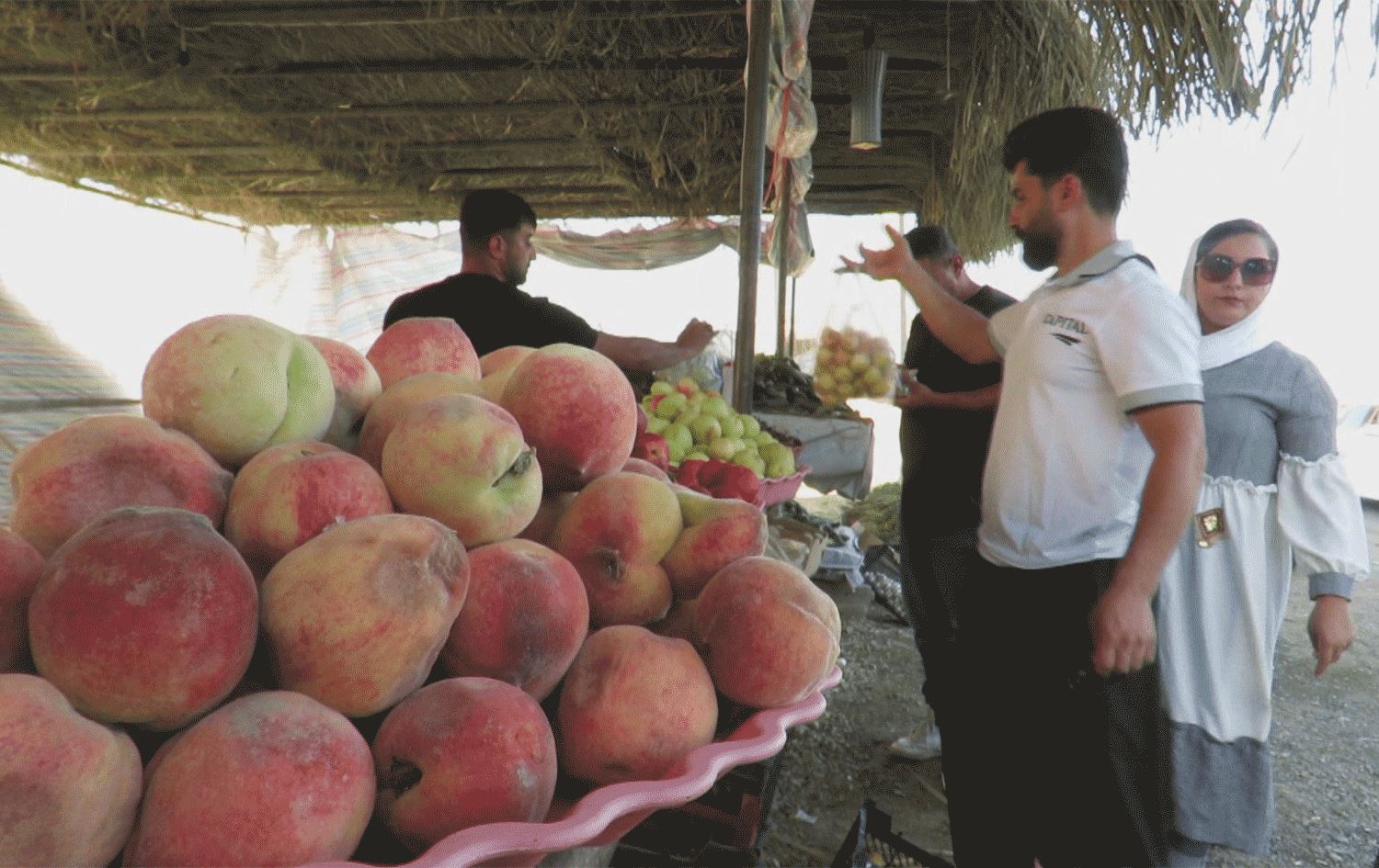 جووتیارانی گوندەکانی قەراخ زرێبار بەرهەمی باخ و زەوییەکانیان لەسەر رێگەی هاتووچۆ دادەنێن بۆ فرۆشتن.