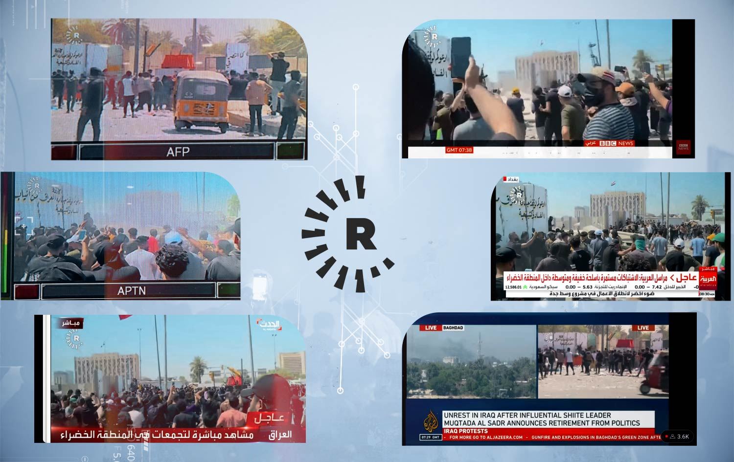 DWی عەرەبی، BBCی عەرەبی، جەزیرەی ئینگلیزی و عەرەبی، یۆرۆ نیوز، سکای نیوزی عەرەبی، TRTی عەرەبی، ئەلعەرەبیە و حەدەس و چەندین کەناڵی دیکە لەنێو ئەو کەناڵانەدا بوون کە دیمەنەکانی بەغدایان لە رێگەی رووداوەوە گواستەوە.