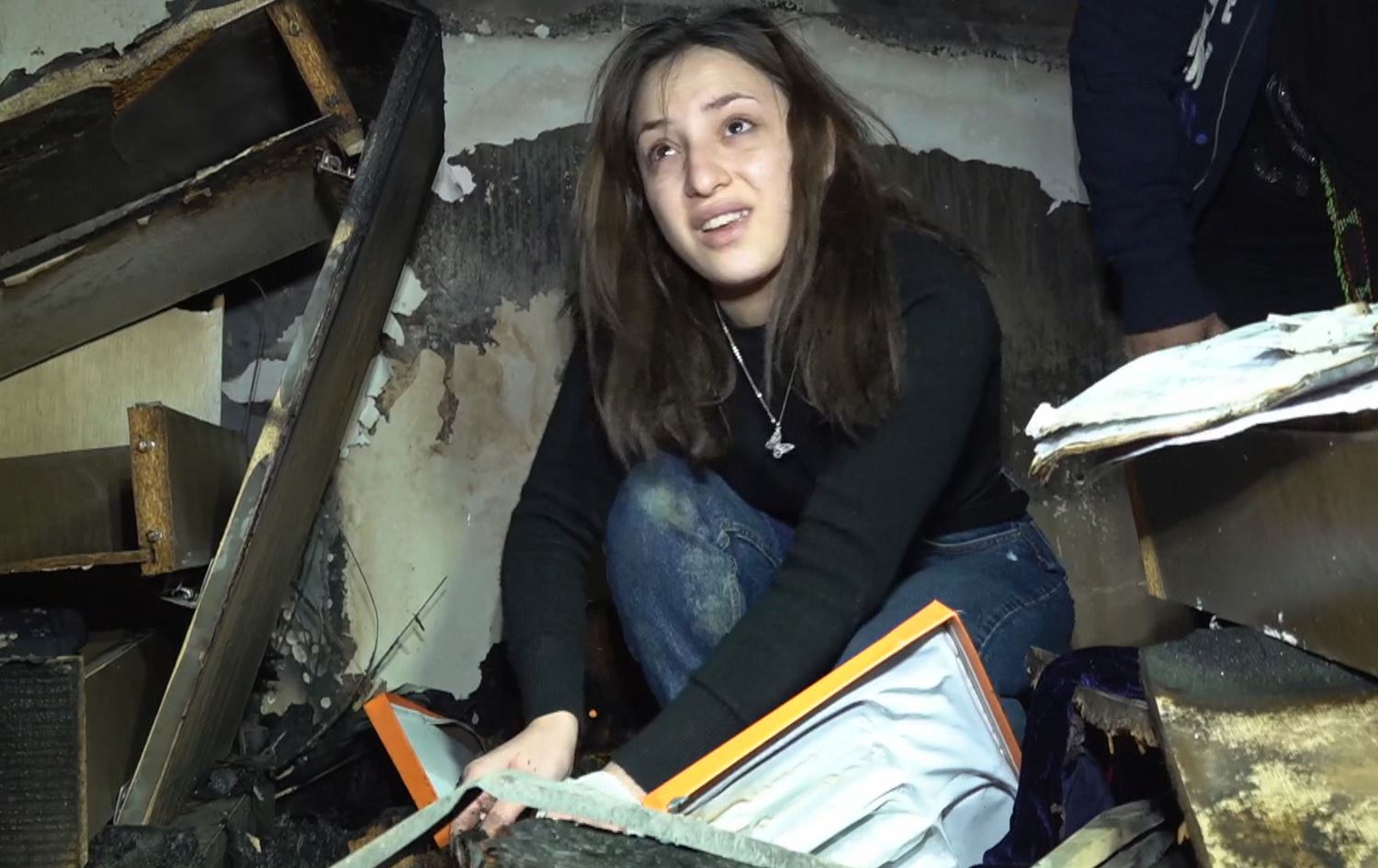 ئەمیرە و خوشکەکەی و دایکی و براکەی دوای گەڕانەوەیان لە دادگە بۆئەوەی سکاڵا لەسەر هاوژینەکەی ئەمیرە تۆمەتبار بکەن گەڕانەوە سەر ماڵە سوتاوەکەیان.