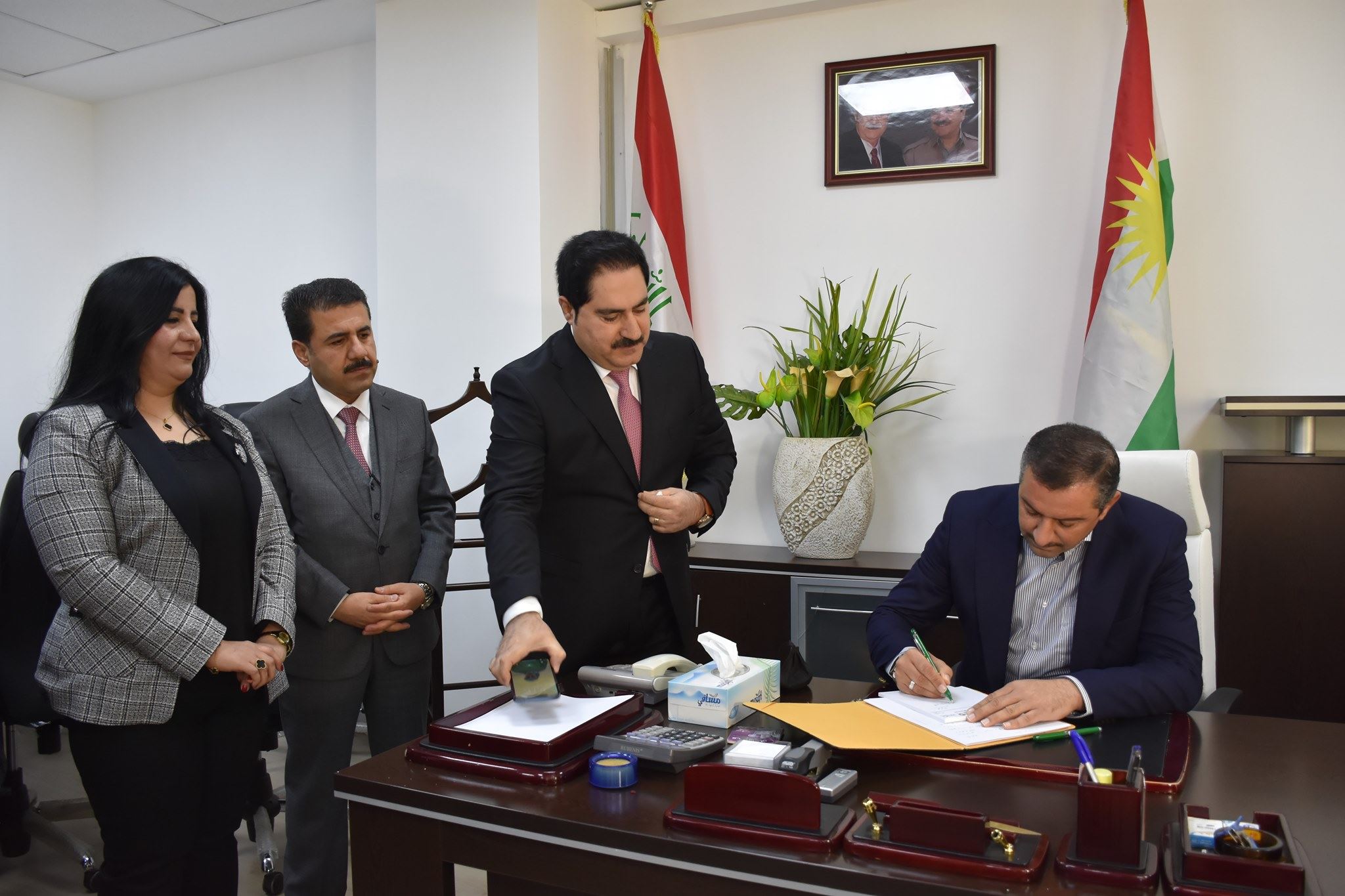 راگەیاندنی پارێزگاری سلێمانی رایگەیاند، ئەمڕۆ، د.هەڤاڵ ئەبوبەکر پارێزگاری سلێمانی، بەئامادەبوونی بریکارانی وەزارەتەکانی ناوخۆ، داد، نووسینگەی جێگری سەرۆکی ئەنجومەنی وەزیران، سەرۆکی ئەنجوومەنی پارێزگای سلێمانی، قائیمقامی قەزای مەڵبەندی سلێمانی، بەڕێوەبەرە گشتیی و بەڕێوەبەرانی فەرمانگاکانی پارێزگای سلێمانی، پێشوازیی دەستبەکاربوونیان لە خاتوو لەیلا عومەر عەلی، جێگری نوێی پارێزگاری سلێمانی بۆ کاروباری کارگێڕی کرد.
