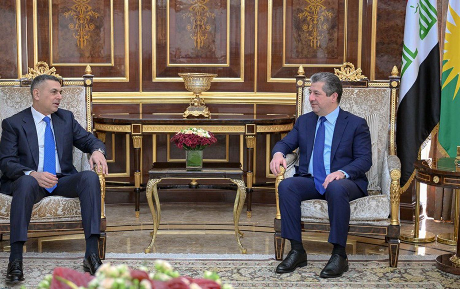 مەسرور بارزانی، سەرۆکوەزیرانی هەرێمی کوردستان ئەمڕۆ شەممە پێشوازی لە ئەسعەد عێدانی، پارێزگاری بەسرە کرد.