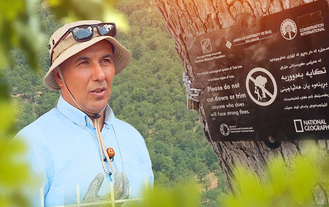 چالاکانی بواری ژینگە لە خەمی لەنێوچوونی ئەو جۆرە داربەڕووە دەگمەنە کە لە هەرێمی کوردستان تەنیا لە چیای حەسەن بەگ ماون، کۆبوونەوە و دەوری دارەکانیان تێلبەند کرد و تابلۆی هۆشیارکردنەوەیان لێدان.