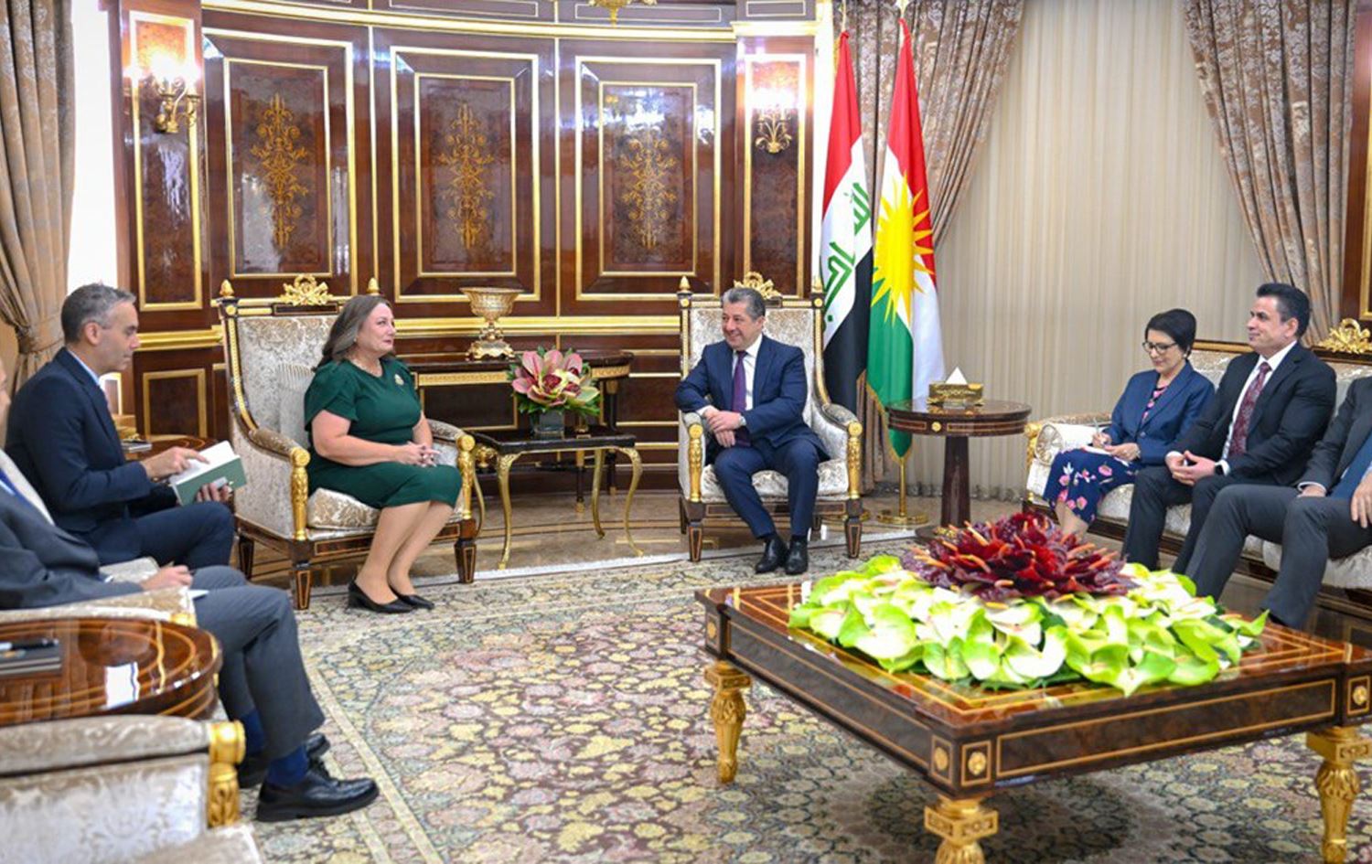 پێشوزیی مەسرور بارزانی، سەرۆکوەزیرانی هەرێمی کوردستان و وێندی گرین، کۆنسووڵی گشتیی ئەمریکا لە هەرێمی کوردستان.