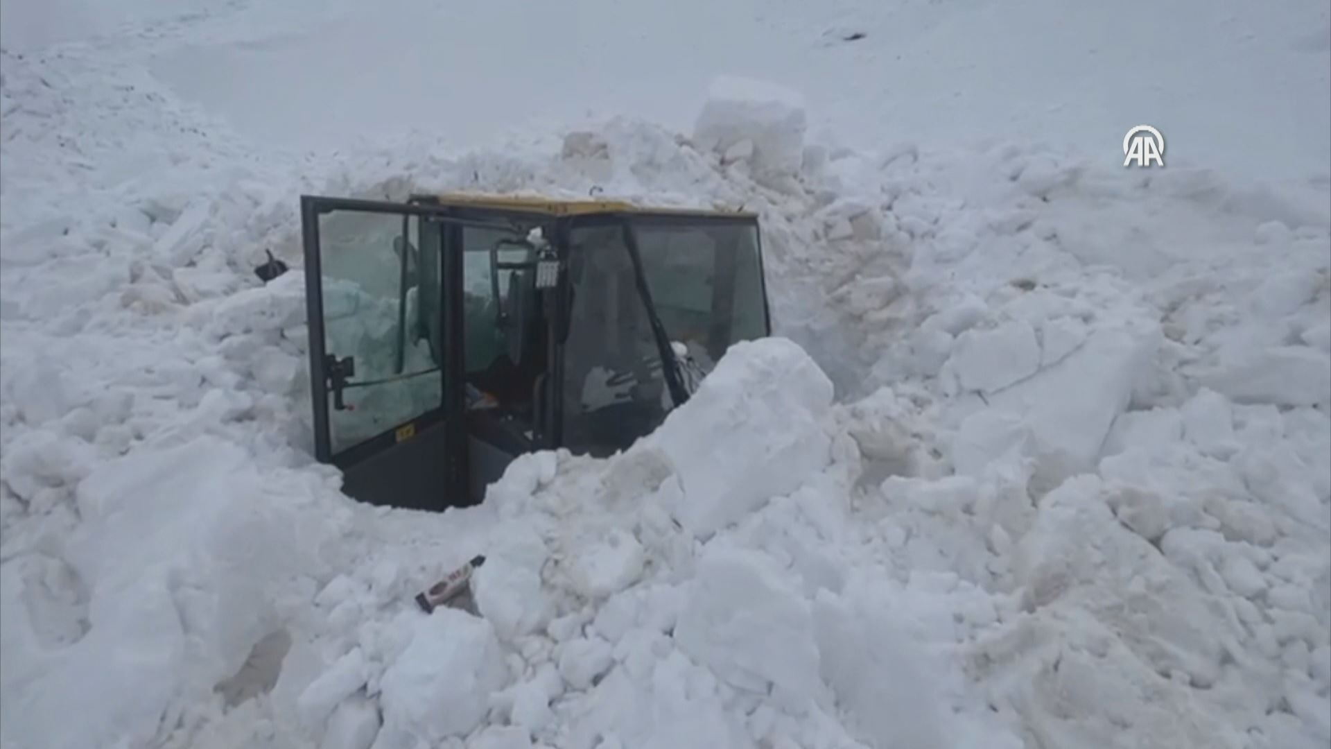 لە سنووری شارۆچکەی بێشەباب سەر بە پارێزگای شرنەخ ـی باکووری کوردستان، ئامێرەکانی پاککردنەوەی رێگەوبان لە کاتی کارکردندا بۆ کردنەوەی رێگە کەوتنە ژێر رەنووی بەفرەوە.