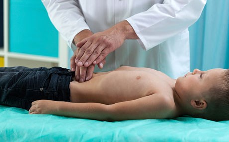 * پشکنینی پزیشکی: کۆمهڵێک نیشانه هەن پزیشک دیارییاندهکات (به گشتی منداڵهکه ناچالاکه؛ یاری ناکات، ناگهڕێت، پێناکهنێت، کاتێ دهڕوات ئازاری زیاد دهکات، کاتێک بازدهدات ئازاری زیاد دهکات، ئهگهر لهناو ئوتومبێلدا بێت کاتێک له بهربهست (تاسه) بدات ئازاری سکی زیاد دهکات! کاتێک دهست دادهنرێت لهسهر بهشی خوارهوه-راستی سک ئازار زیاد دهکات، به دهست لابردن زیاتر! کاتێک دهست له لای چهپ دهدرێت لای راست دێشێت، زیادبوونی ئازار به کۆکه، به جووڵاندنی قاچ ئازاری سک زیاددهکات، به پشکنینی کۆم ئازاری ههیه)، پێویسته پشکنین بکرێت بۆ دڵنیابوونهوه له نهبوونی نهخۆشی دیکه وهکو (سووڕانی گون، چوونهنێویهکی ریخۆڵە، سووڕانی ریخۆڵە، ههوکردنی ریخۆڵەکان، ههوکردنی میزهڕۆ.هتد).