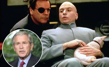 جۆرج بۆش، بەوە ناوبانگی دەرکرووە، کە پەنجەی بچووکی لەسەر لێوەکانی دادەنێت. ئەمەش جوڵەیەکی بەناوبانگی دکتۆر "ئیڤڵ ئیمپێرسۆنەیشن"ە کە ئەکتەری سەرەکی فیلمی "ئۆستن پاوەرس"ە. بۆش هەوادارێکی سەرسەختی درامای " ئۆستن پاوەرس"بووە کە لە سەردەمی سەرۆکایەتی ئەو پەخشکرا.