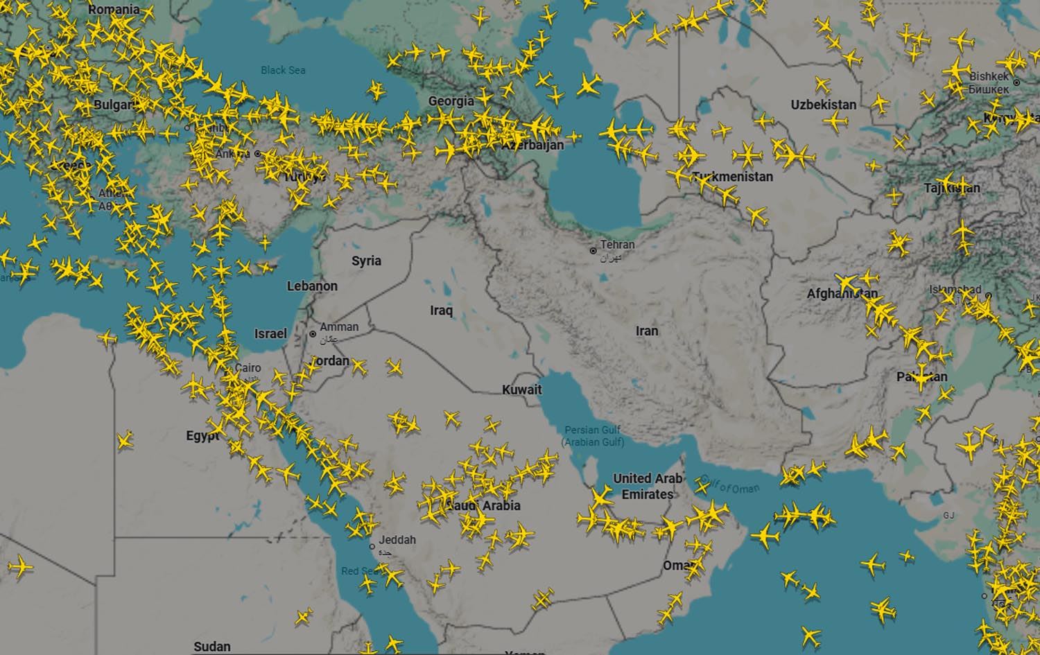• کۆمپانیاکانی ناوچەکە: هێڵە ئاسمانییەکانی ئیمارات، ئیتیحاد و قەتەر زۆربەی گەشتەکانیان راگرتووە. میسر و سووریاش گەشتەکانیان بۆ شارە گەورەکانی ناوچەکە وەستاندووە.