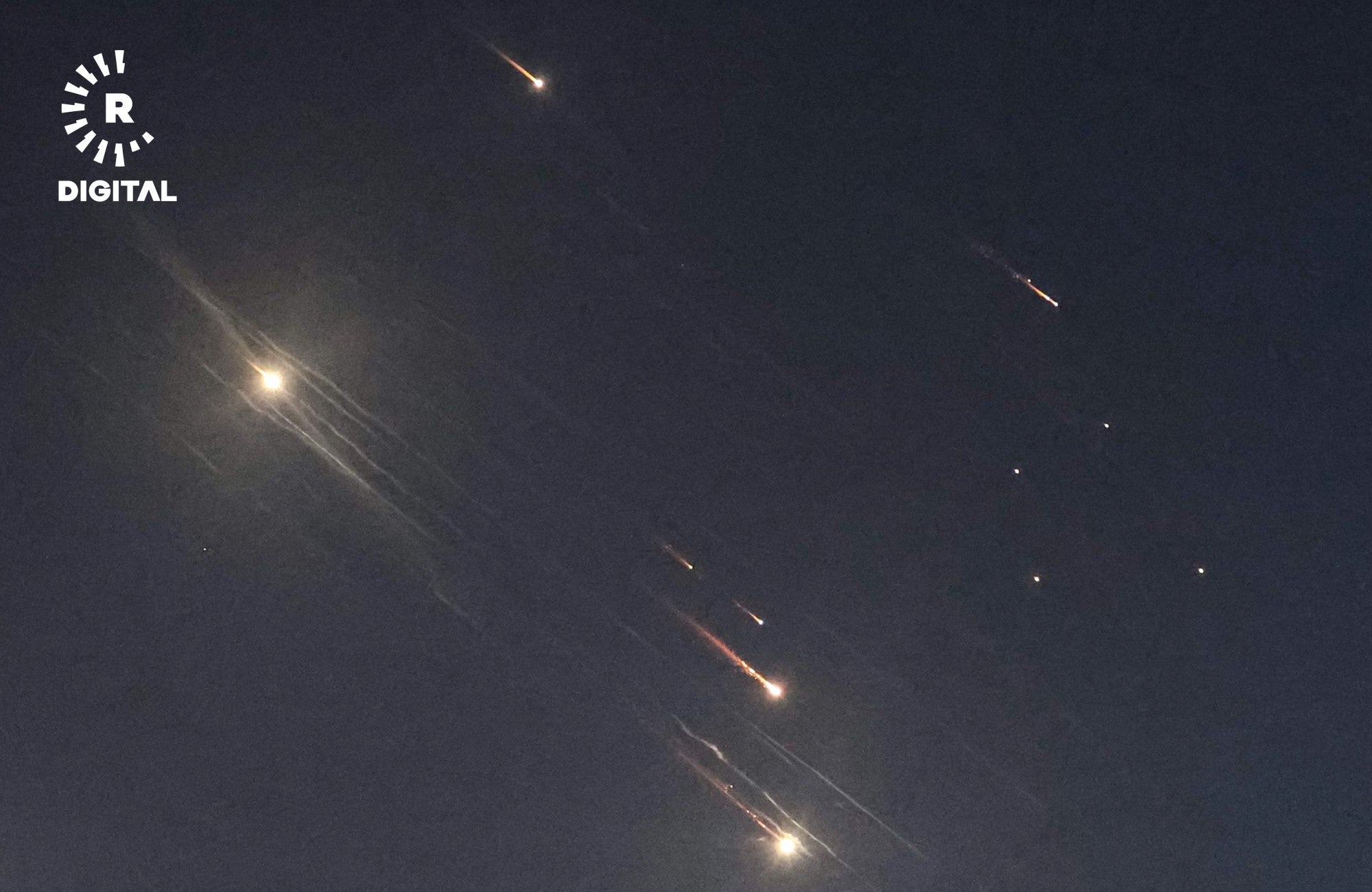 وێنەکان مووشەکەکانی ئێران لە ئاسمانی ئیسرائیل و بەرپەرچدانەوەیان، لەگەڵ کاردانەوەی خەڵک لە ئێران و فەلەستین پێشان دەدەن.