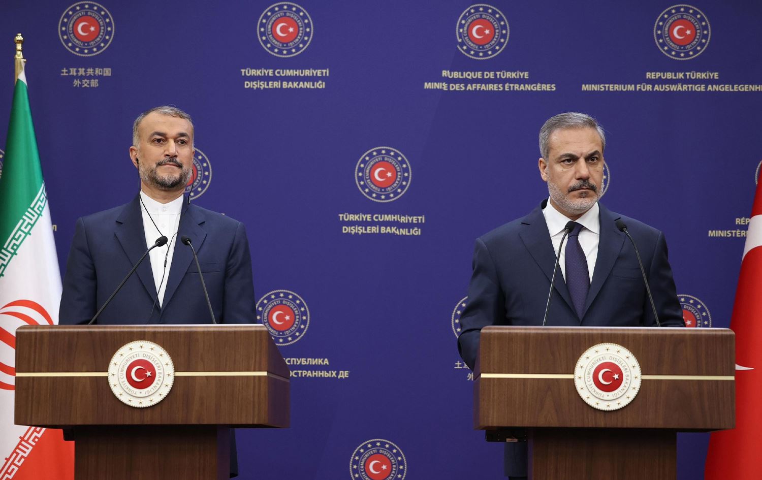هاکان فیدان، وەزیری دەرەوەی تورکیا، حوسێن ئەمیر عەبدوڵلایهان، وەزیری دەرەوەی ئێران، وێنە: AA