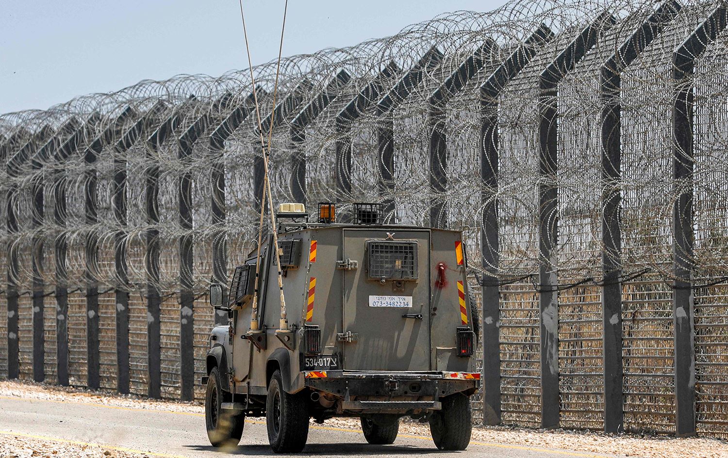 ئۆتۆمبێلێکی سەربازیی سوپای ئیسرائیل لەدوای بۆردوومانەکە لە بەرزاییەکانی "جۆلانی داگیرکراو" چاودێریی سنووری ئیسرائیل و سووریا دەکات. وێنە: AFP