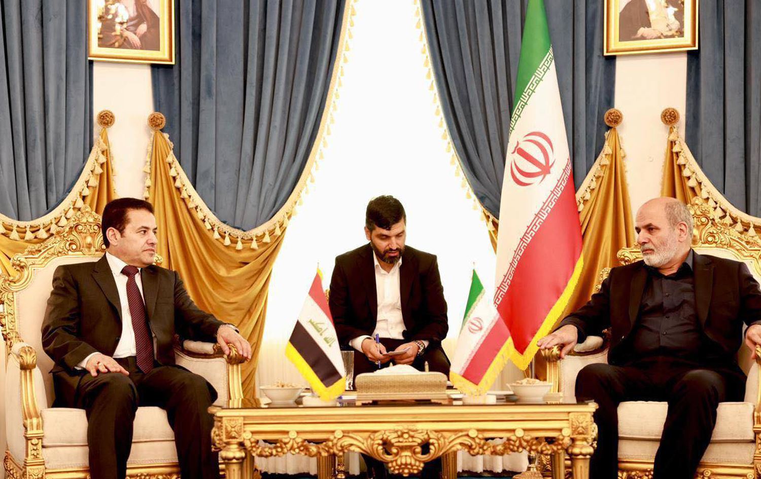 قاسم ئەعرەجی، راوێژکاری ئاسایشی نەتەوەیی عێراق و ئەحمەدیان ئەمینداری گشتیی ئاسایشی نەتەوەیی ئێران.