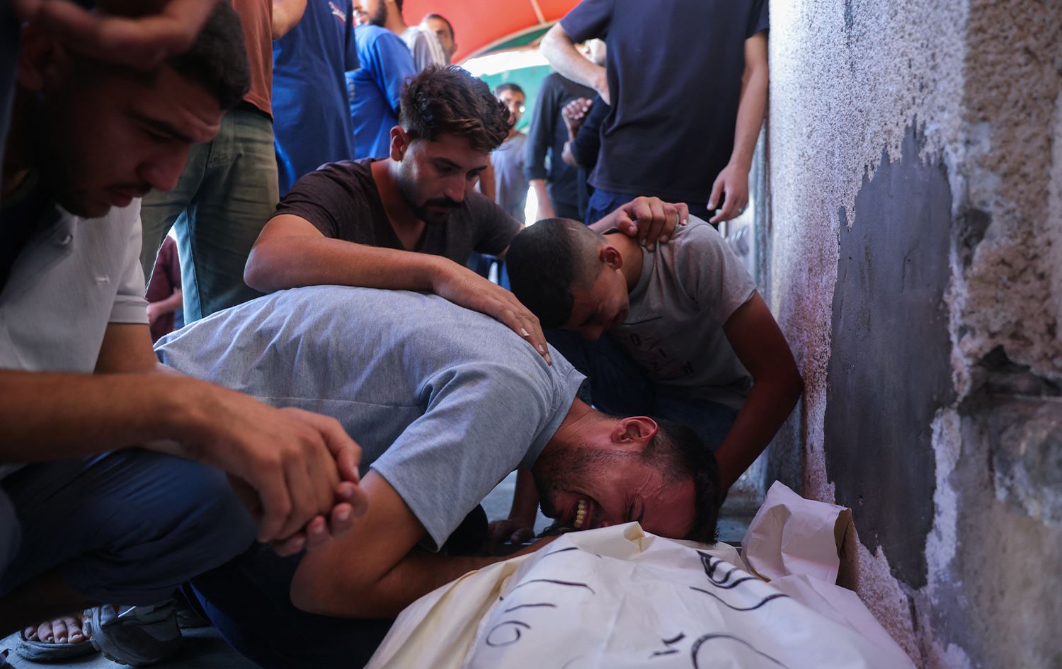 هاووڵاتییەکی غەززە لەسەر تەرمی ئازیزێکی بەکوڵ دەگریێت کە لەلایەن ئیسرائیلەوە کوژراوە. وێنە: AFP