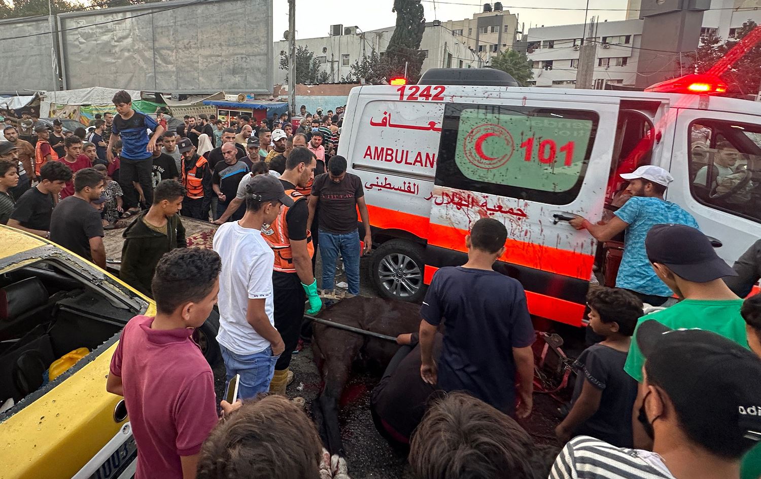هاوکات محەممەد ئەبو میسباح، گوتەبێژی مانگی سووری فەلەستینی رایگەیاند، دەروازەی نەخۆشخانەکە پڕبوو لە خەڵکی سڤیل، کاتێک بۆردوومانکرا.