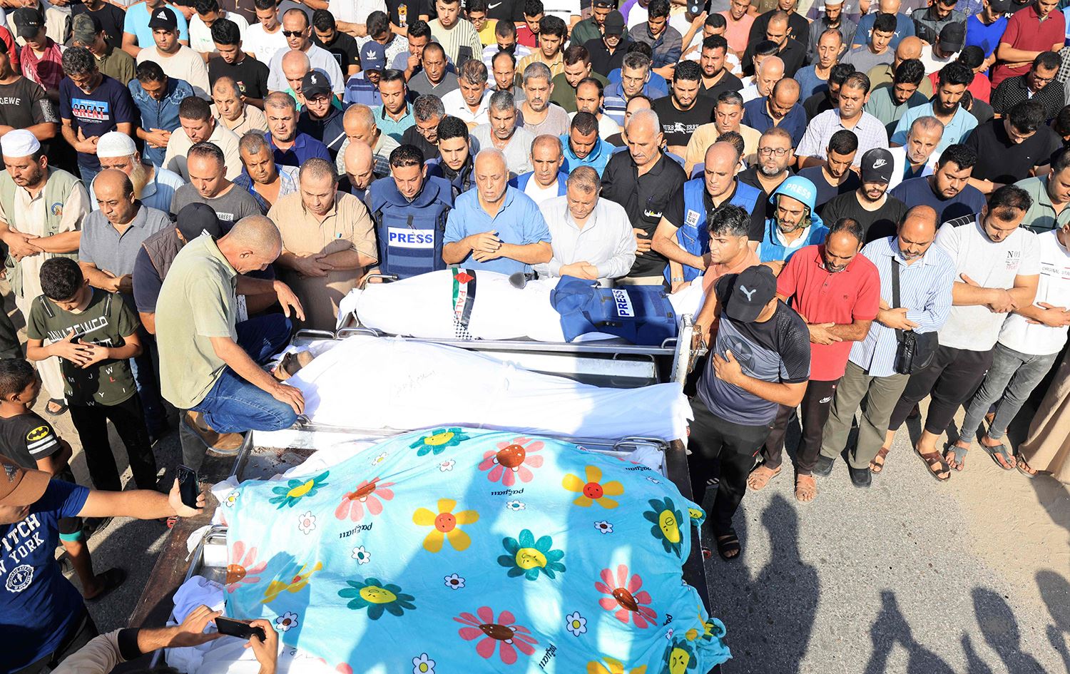 لە غەززە نوێژ لەسەر ژمارەیەک تەرم دەکرێت کە بەهۆی بۆردوومانەکانی ئیسرائیلەوە گیانیان لەدەستداوە. وێنە: AFP