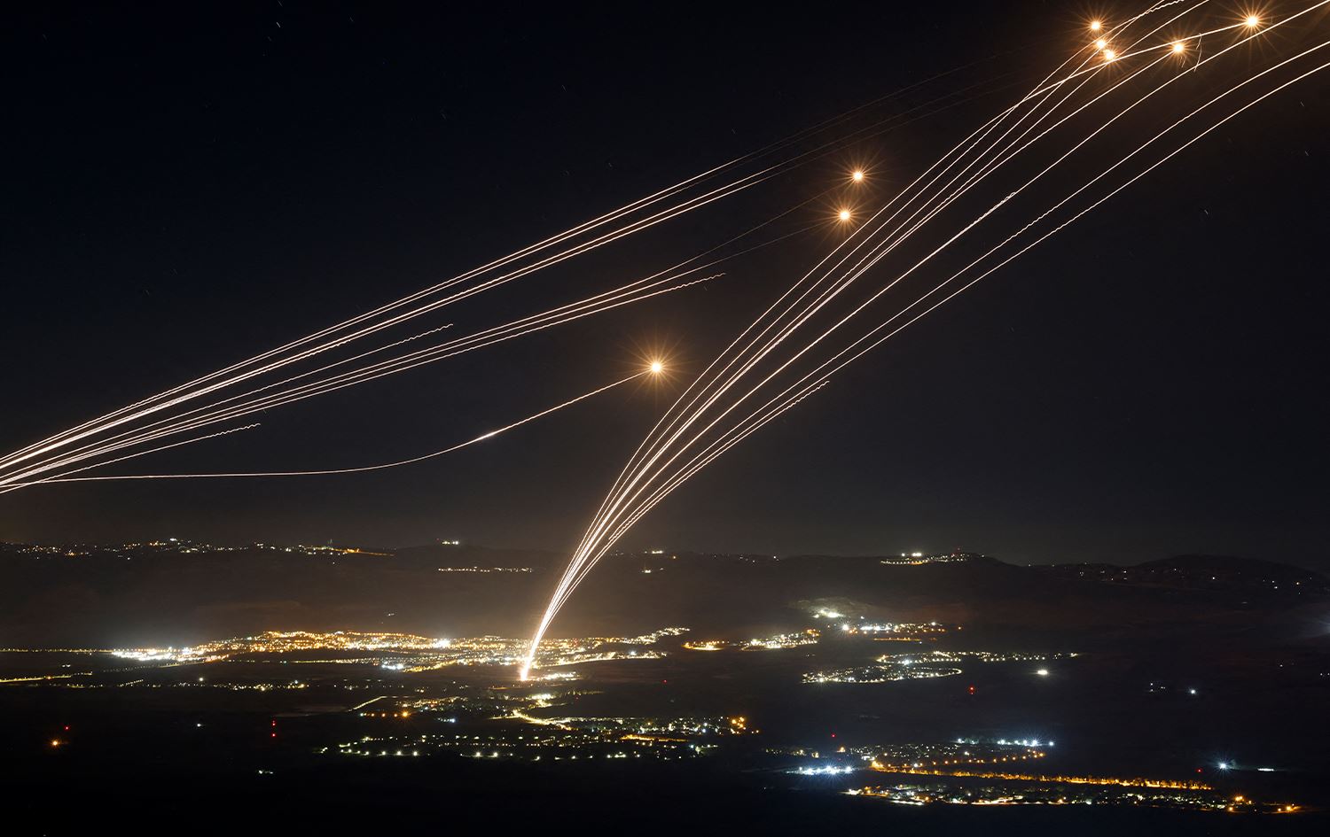 دژەمووشکی ئیسرائیل لەکاتی بەرپەرچدانەوەی چەند مووشەکێک لە باکووری وڵاتەکە، 3-8-2024، وێنە: Leo Correa/AP