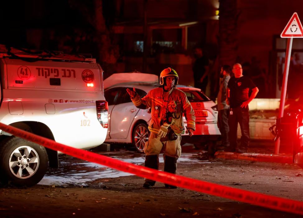 پیاوێکی ئاگرکوژێنەوەی ئیسرائیل لە شوێنێکی شاری چەند پارچەیەک لە شاری ئەشکیلۆن [عەسقەلان] کە پارچەی مووشەکی بەرکەوتووە، وێنە: reuters