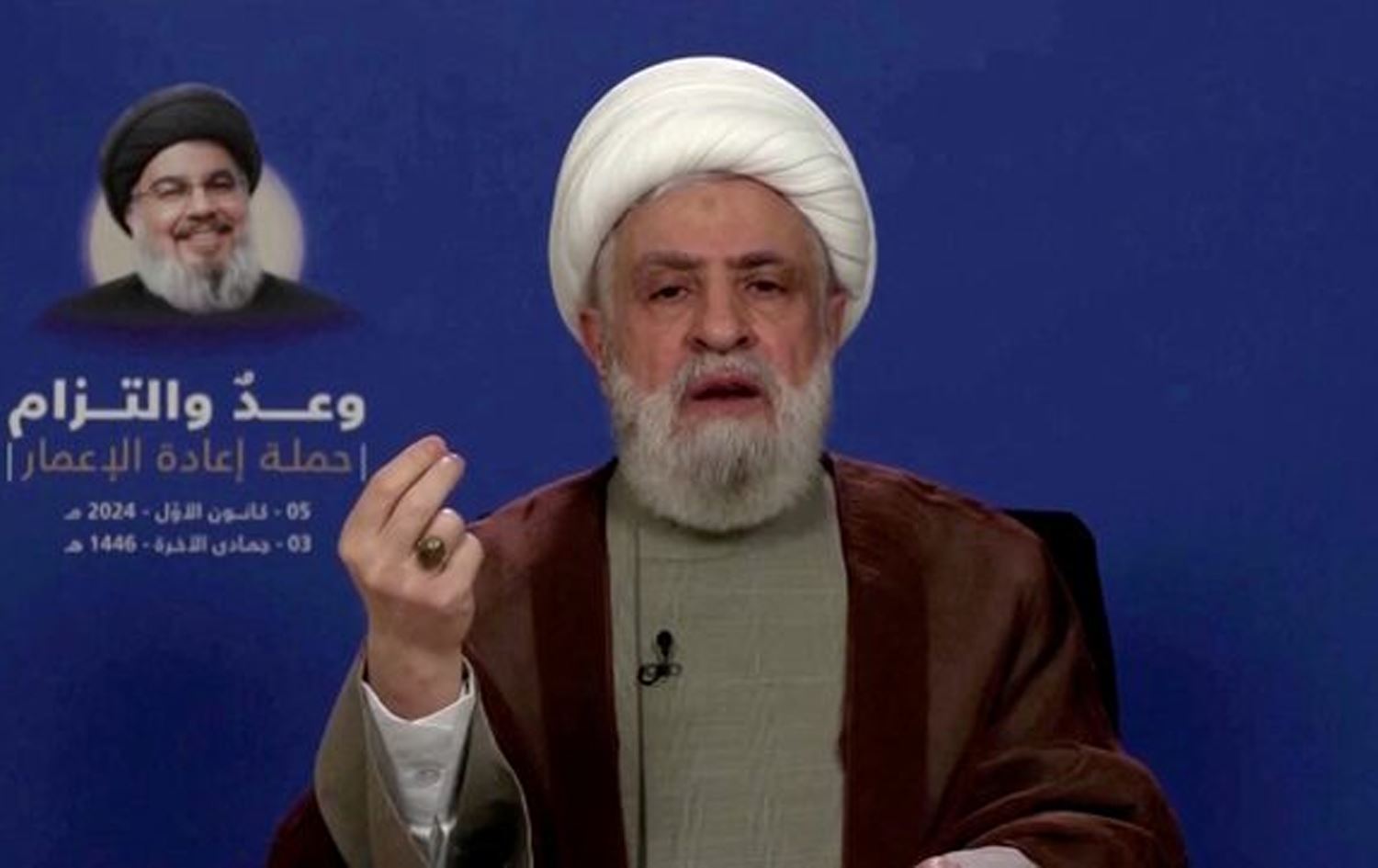 نەعیم قاسم لە رێوڕەسمی ئایینیی عاشوورادا، لە گوتارێکی تەلەڤیزیۆنیدا کە بۆ هەزاران لایەنگری لە گەڕەکەکانی باشووری بەیرووت پێشکێشی کرد، گوتی: "ئەم هەڕەشەیە وامان لێناکات ملکەچ بین و خۆمان بەدەستەوە بدەین."