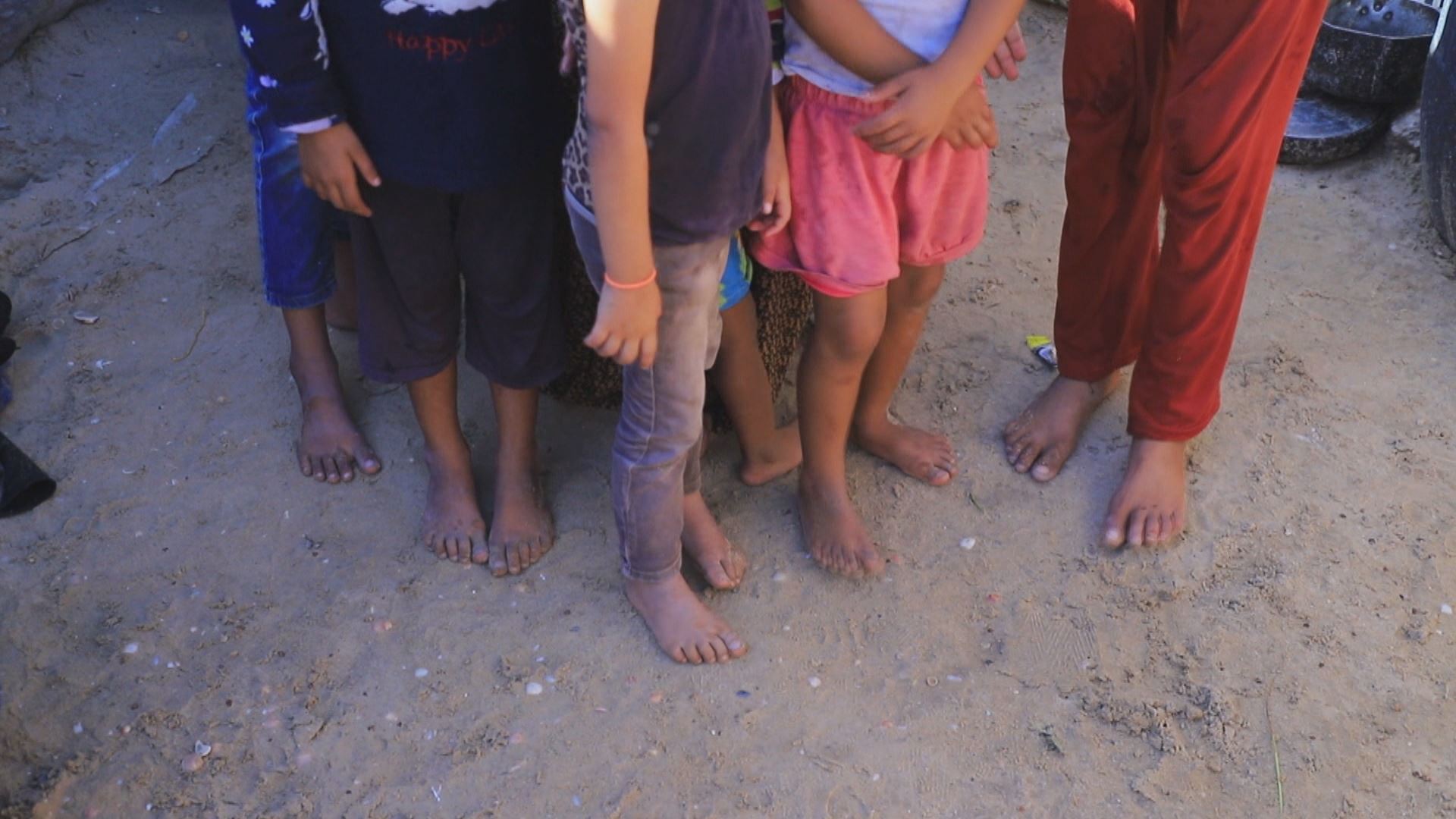 گرفتی پێڵاوی دڕاو یان پێخاوسی بەشێكی بەرچاوی غەززەییەکانی گیرۆدە کردووە وەک ئیسلام ناتوور، منداڵ و خوشکەزاکانی. ئەوان ناچارن و، ژیان و گوزەران و یاریکردنیان بە پێی پەتی بێت.