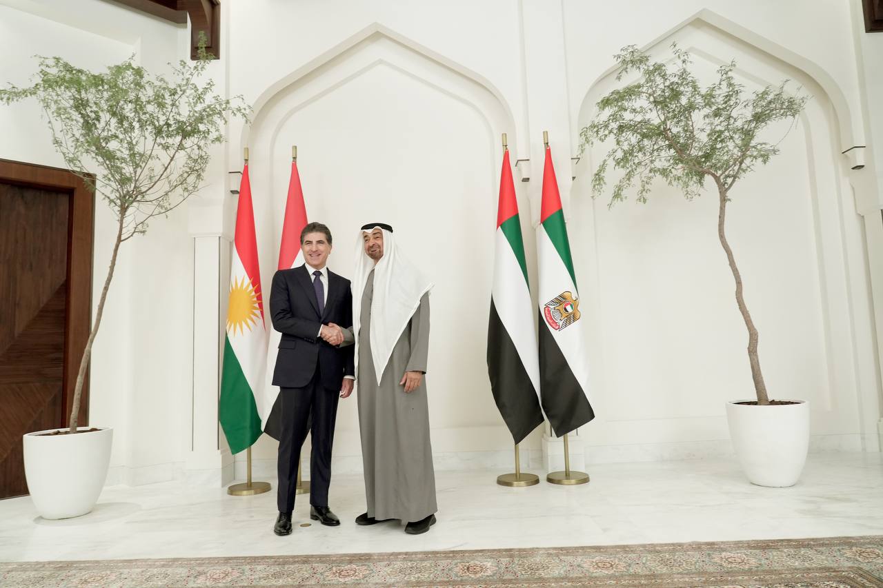 سەرۆکی هەرێمی کوردستان و سەرۆکی ئیمارات لەبارەی دۆخی جیهان و رۆژهەڵاتی نێوەڕاست "جهخت له گرنگيى پتهوكردنى هاريكاريى هاوبهشى نێوان ههمووان" دەکەنەوە "بۆ پاراستنى ئارامى و سهقامگيرى و چارهسهركردنى ئاشتیيانهى كێشه و ناكۆييهكان."