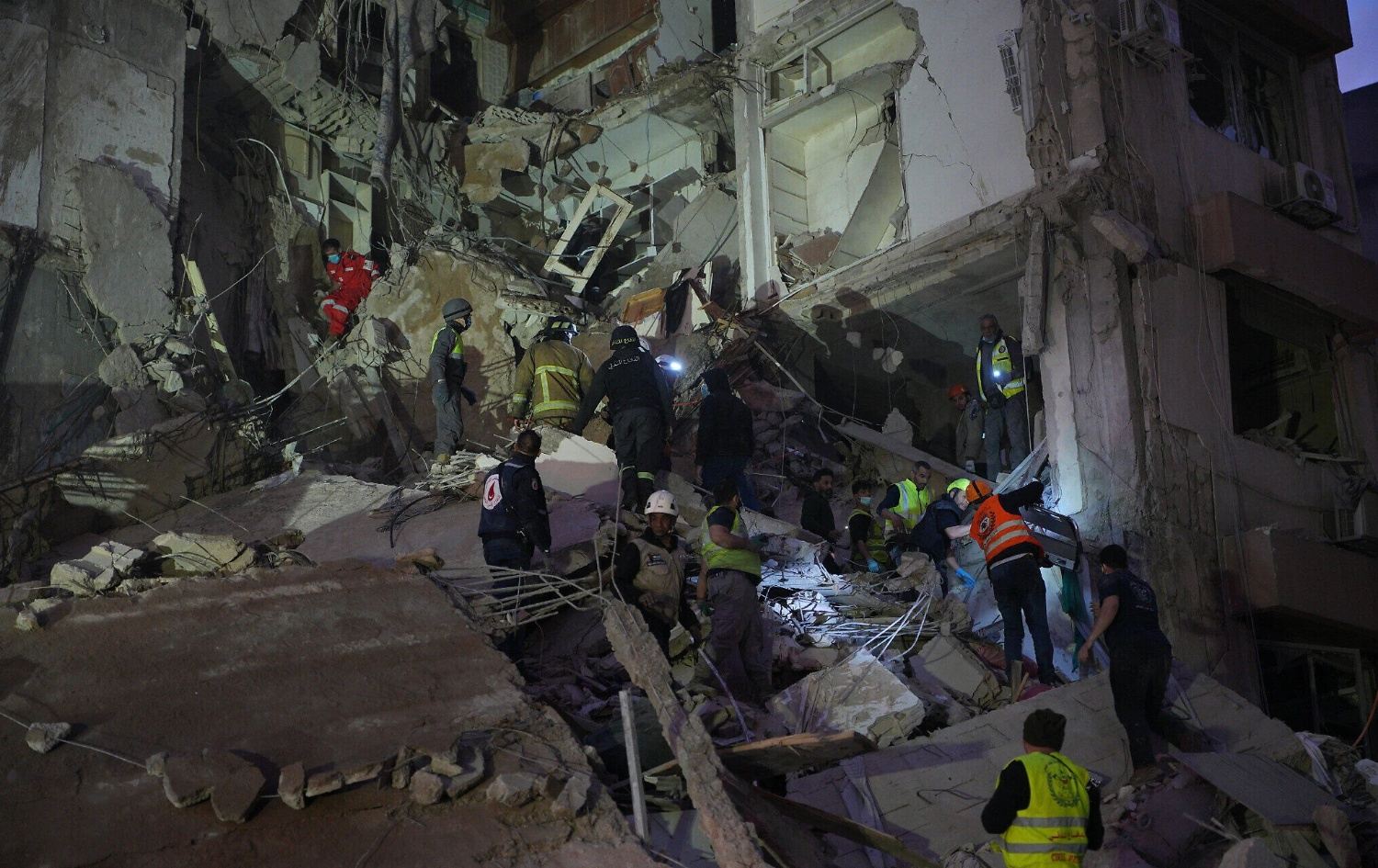 تیمەکانی فریاگوزاری لە بەیروت بەدوای قوربانیانی هێرشێکی سوپای ئیسرائیلدا دەگەڕێن. وێنە: AP
