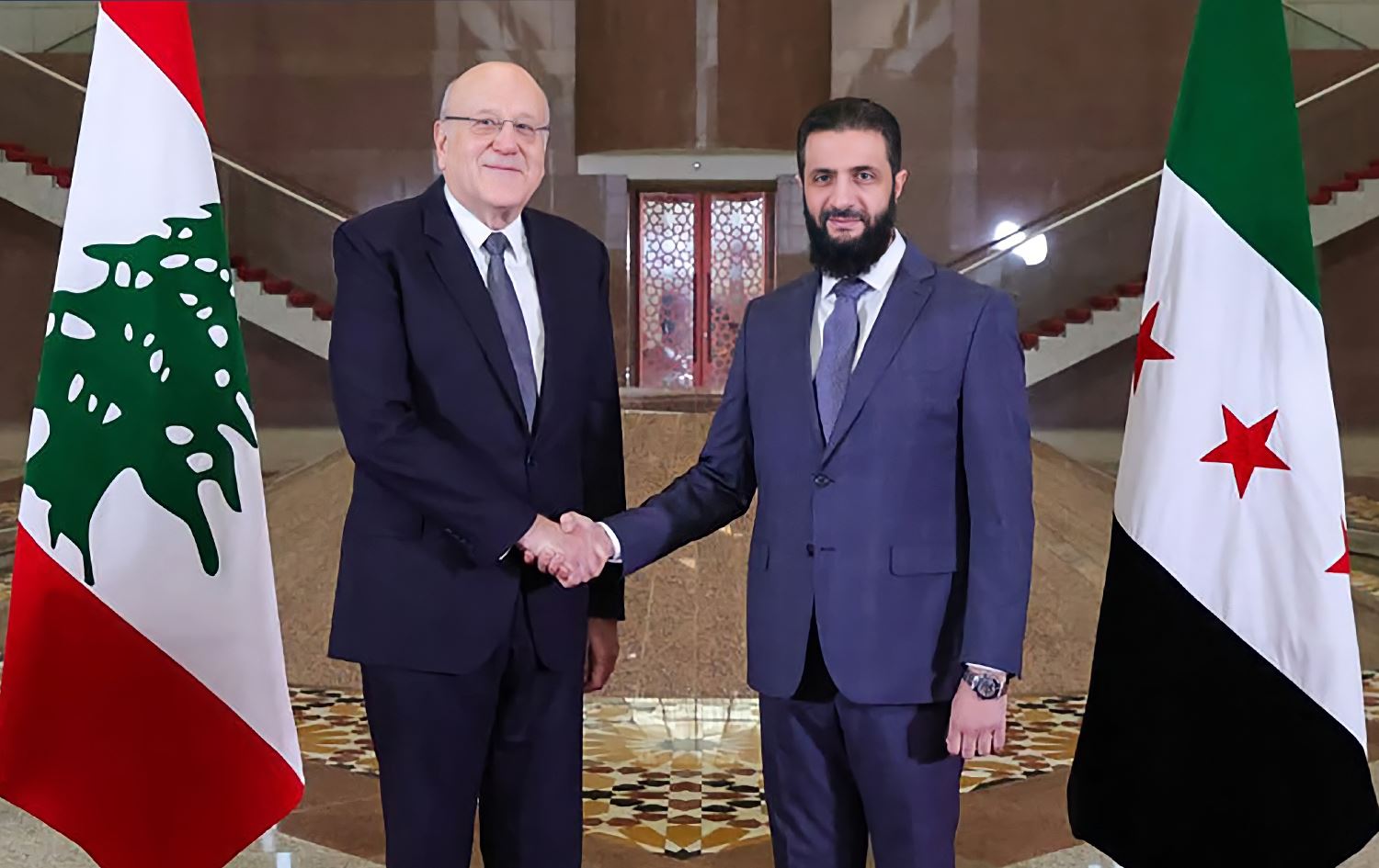 ئەحمەد شەرع، سەرۆکی دیفاکتۆی دەسەڵاتی راگوزەری سووریا ئەمڕۆ لە دیمەشق پێشوازی لە نەجیب میقاتی، سەرۆکوەزیرانی لوبنان کرد.