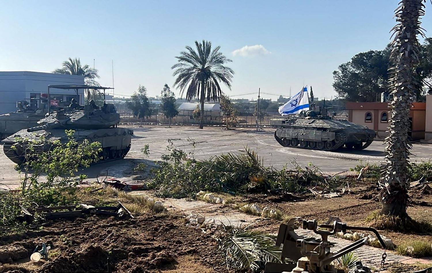 وێنەیەکی ئەرشیڤیی تانکێک کە ئاڵای ئیسرائیلی بەسەرەوەیە لە دەروازەی رەفەح، سوپای ئیسرائیل وێنەکەی بڵاوکردبووەوە