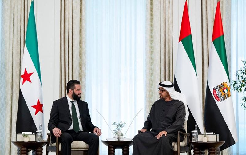 کۆبوونەوەی شێخ محەممەد بن زاید ئال نەهیان، سەرۆکی ئیمارات و ئەحمەد شەرع، سەرۆکی کاتیی سووریا.