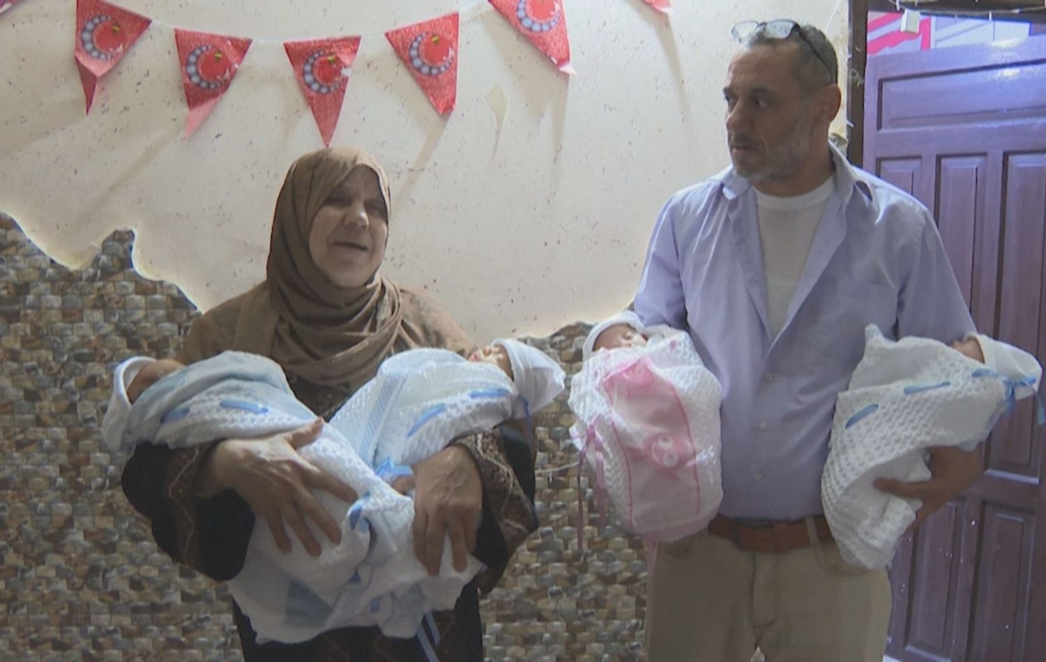 نەجاح شەمالی، داپیرەی منداڵەکان و دایکی ئەحمەدە، دەڵێ "ئەم منداڵانە هی کوڕەکەمن، خوا پێی بەخشیوین. منداڵی کوڕەکەمن، سوپاس و ستایش بۆ خودا، سپێرمەکەیان بە قاچاخ بۆ رەوانەکردین و پرۆسەی بلووری بۆ هاوژینەکەی کرا و خوا بە چوارینەیەک بەسەری کردینەوە؛ سێ قارەمان و بووکەڵەیەکی جوانن".
