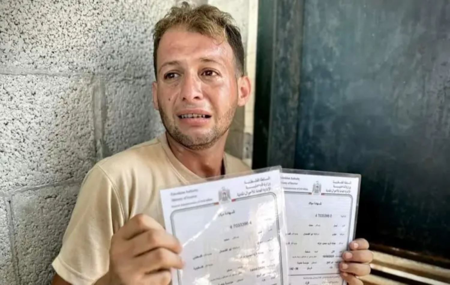 ئەم پیاوە لە غەززە تازە بووەتە باوکی دووانەیەک، چووە نەخۆشخانە بەڵگەنامەی لەدایکبوونیان وەربگرێتەوە، لەوێ هەواڵی کوژرانی دوو منداڵ و هاوژینەکەی بە بۆردوومانێکی ئیسرائیل پێدەگات. کاردانەوە و هاواری باوکەکە ببینە. pic.twitter.com/EVaK9Hfaj1