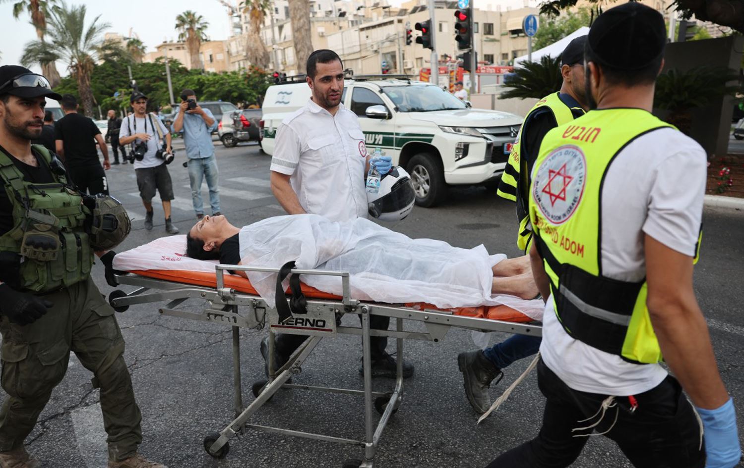 تیمەکانی تەندرووستی شاری بات یامی ئیسرائیل، دوای هێرشەکەی ئێران بریندارێک دەگوازنەوە نەخۆشخانە. وێنە: AFP
