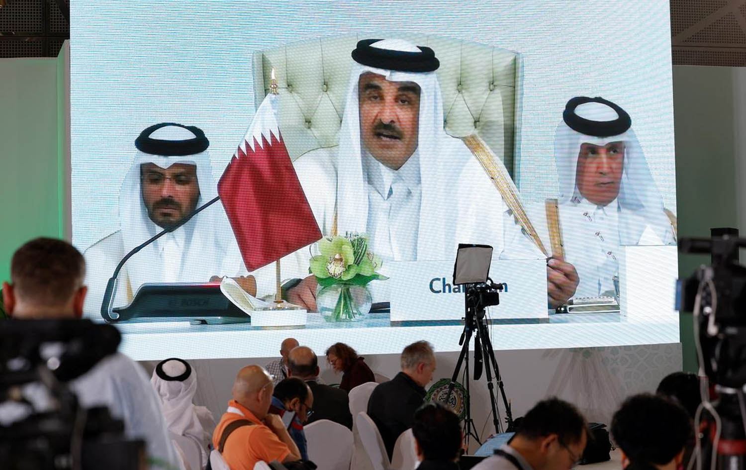 ئەمڕۆ لە گوتاری کردنەوەی لووتکەی نائاسایی وڵاتانی عەرەبی و ئیسلامی دا لە دۆحەی پایتەخت، میری قەتەر هێرشەکەی ئیسرائیلی بۆسەر سەرکردەکانی حەماس لە وڵاتەکەی بە "دەستدرێژییەکی گەورە و ترسنۆکانە" ناوبرد، رایشیگەیاند، جەنگی ئیسرائیل بۆسەر غەززە بووەتە جەنگی قڕکردن. هەروەها ئاماژەی بەوەش کرد، ئیسرائیل کار بۆ "دابەشکردنی سووریا دەکات."