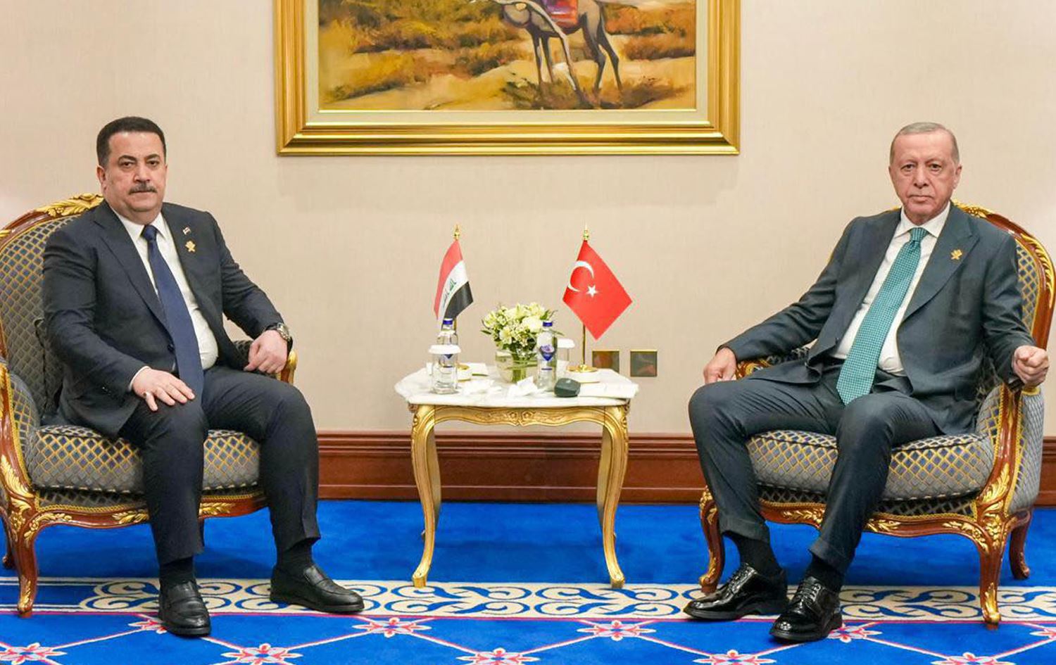 محەممەد شیاع سوودانی، سەرۆکوەزیرانی عێراق و رەجەب تەیب ئەردۆغان، سەرۆککۆماری تورکیا. وێنە: نووسینگەی سوودانی.