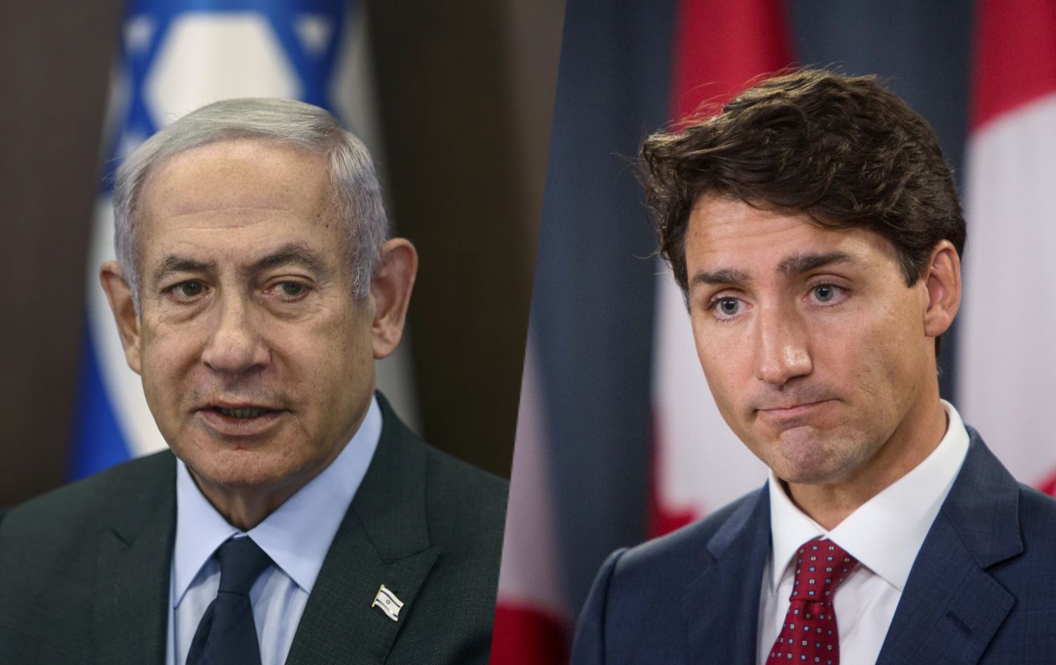 لای راست، جەستن ترۆدۆ، سەرۆکوەزیرانی کەنەدا و لای چەپ، بنیامین نەتەنیاهوو، سەرۆکوەزیرانی ئیسرائیل.