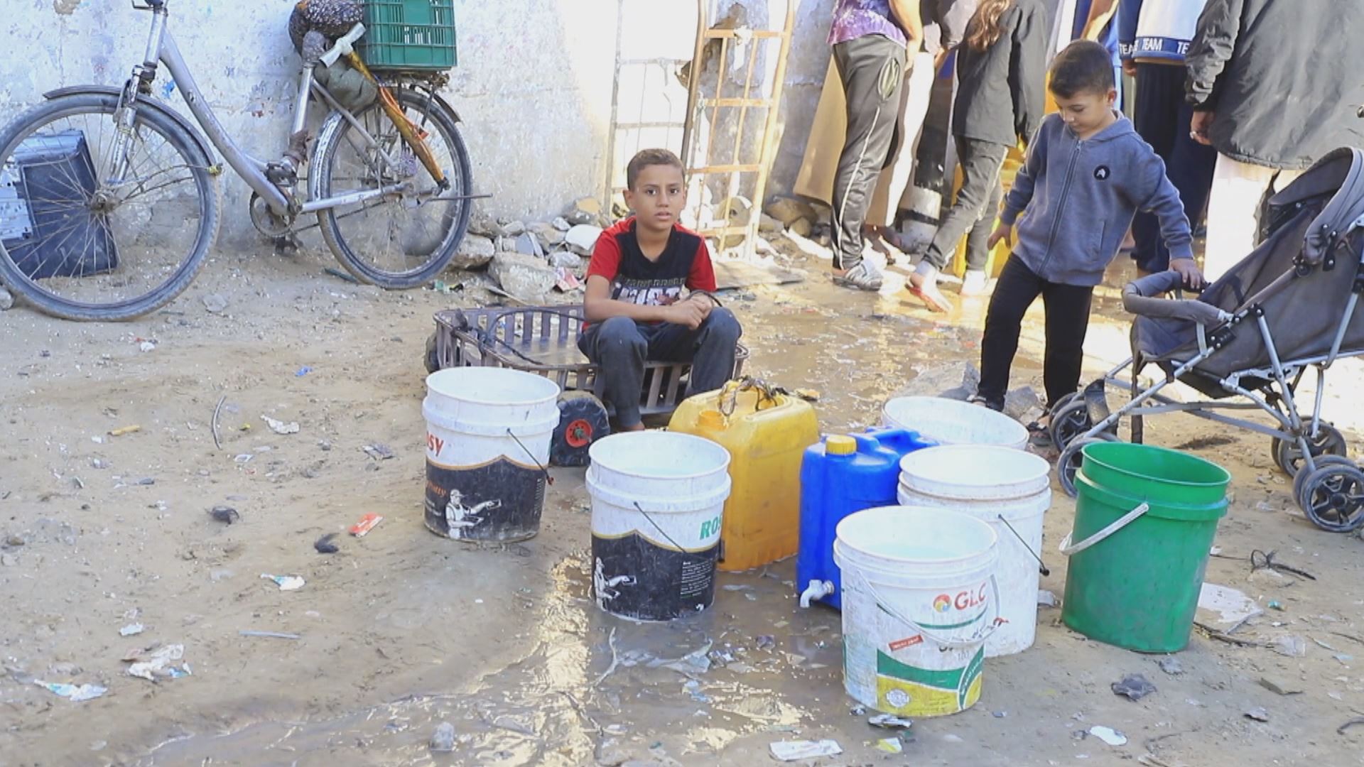 ئیبراهیم عەلوان 10 مانگە لە غەززە ئاوارە بووە و رۆژانە لە گەشتێکى تاقەتپڕوکێن و بەردەوامدایە بۆ دەستکەوتنى ئاو.