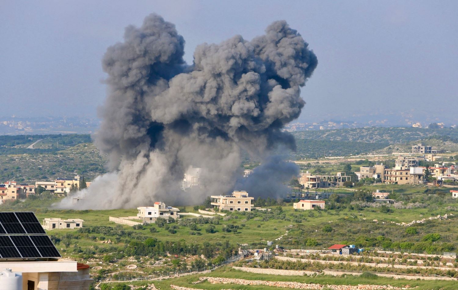 دووکەڵ لە گوندی مەجدیلزوون لە باشووری لوبنان بەرزدەبێتەوە بەهۆی بۆردوومانێکی ئیسرائیل لە 15-4-2024، وێنە: AFP