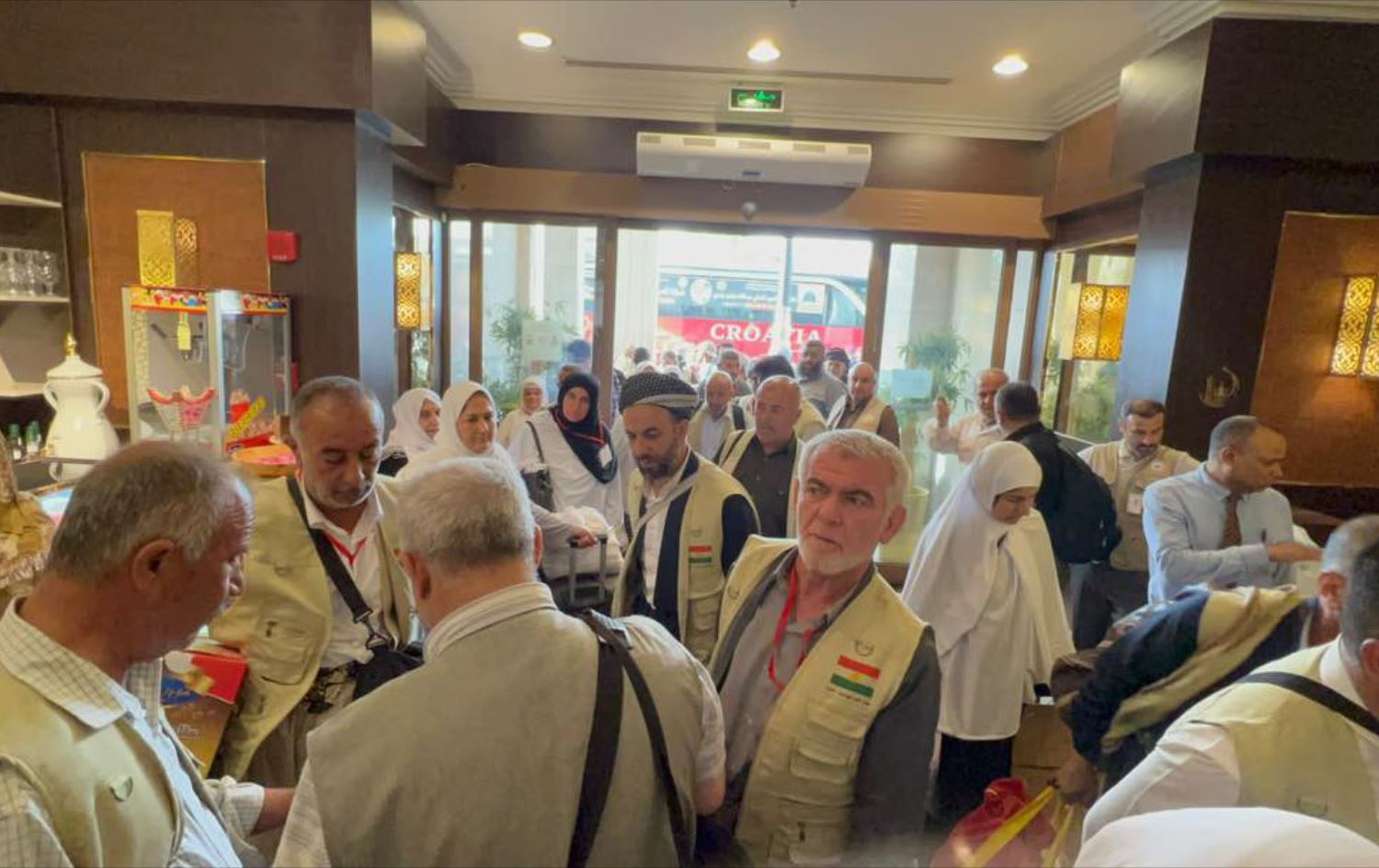 گەیشتنی کاروانێکی حاجییانی هەرێمی کوردستان بۆ مەککە. وێنە: پەیجی حکومەت لە فەیسبووک
