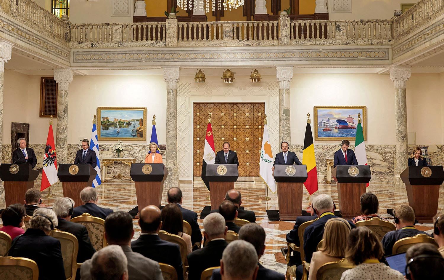 کۆنگرەی رۆژنامەڤانیی چەند سەرکردەیەکی ئەورووپا و سەرۆکی میسر لە قاهیرە. وێنە: AFP