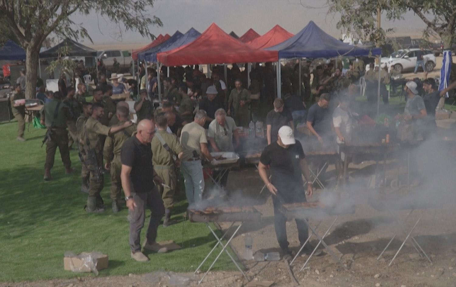 لە شاری ئۆفاکیم لە نزیک سنوورەکانی غەززە، تەنیا بە دووریی 12 کیلۆمەتر لە غەززە، پێش ئەوەی سەربازانی سوپای ئیسرائیل بەرەو بەرەکانی پێشەوەی شەڕی حەماس بەڕێبکەون، لەلایەن سوپاوە فێستیڤاڵێکیان بۆ رێکخرا.