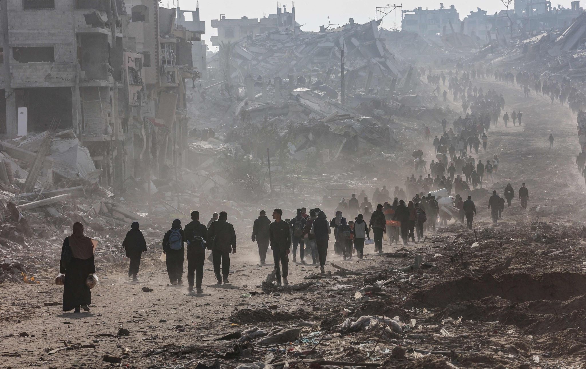 خەڵکی جەبالیای باکووری غەززە دوای رێککەوتنی ئاگربەست بە لێشاو دەگەڕێنەوە بۆ ماڵەکانیان. وێنە: AFP