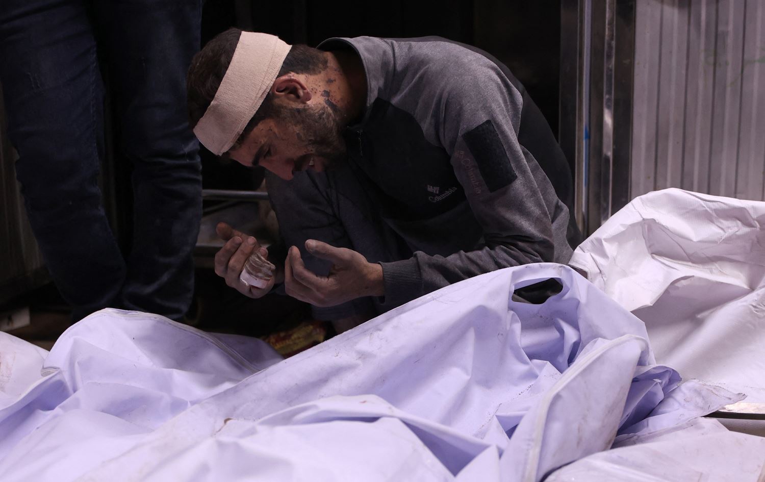 کەسێک نزا بۆ چەند کەسێک دەکات کە لە ئەنجامی هێرشەکان گینیان لەدەستداوە. وێنە: AFP