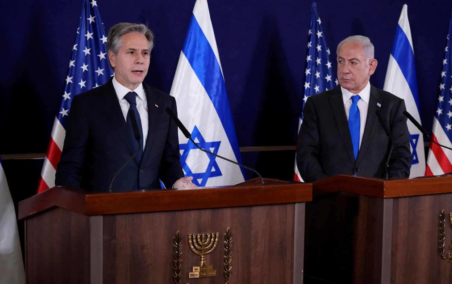 ئەنتۆنی بلینکن، وەزیری دەرەوەی ئەمریکا و بنیامین نەتەنیاهوو، سەرۆکوەزیرانی ئیسرائیل