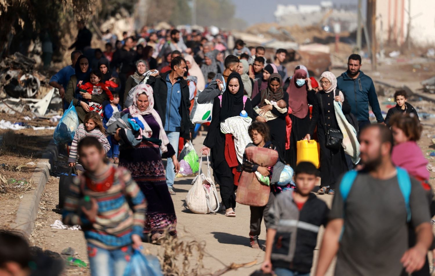 فەلەستینییەکان لەکاتی جێهێشتنی باکووری کەرتی غەززە بەرەو باشووری کەرتەکە لە 18-11-2023، وێنە: MOHAMMED ABED / AFP