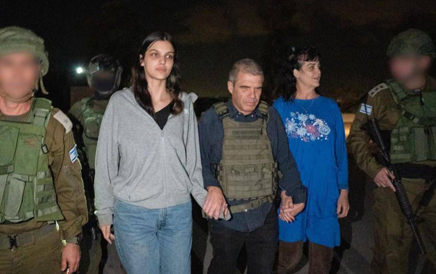 بە گوێرەی نووسینگەی راگەیاندنی سەرۆکوەزیرانی ئیسرائیل، جودیت تای رەعنان و ناتالی شۆشانا رەعنانی کچی لە ناوچەی نەحال عۆز لە دەوروبەری غەززە بە بارمتە گیرابوون.